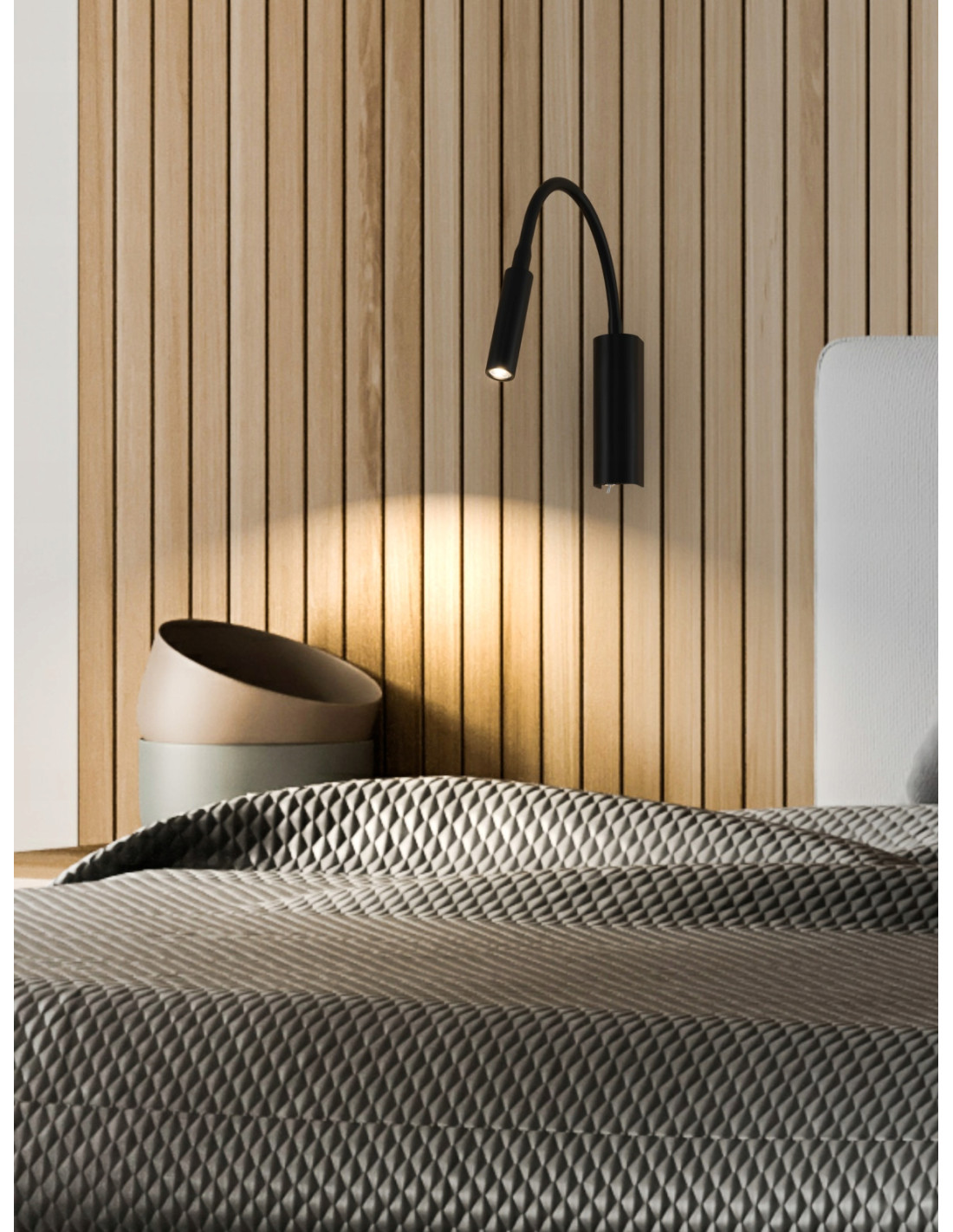 Jednym z kluczowych atutów lampy Nuto Nero jest elastyczne ramię, które umożliwia precyzyjne skierowanie strumienia światła w dowolną stronę. Dzięki temu możliwe jest dostosowanie oświetlenia do indywidualnych potrzeb użytkownika. Dyskretne umiejscowienie włącznika na dolnej części obudowy sprawia, że codzienne użytkowanie staje się jeszcze prostsze i bardziej komfortowe.