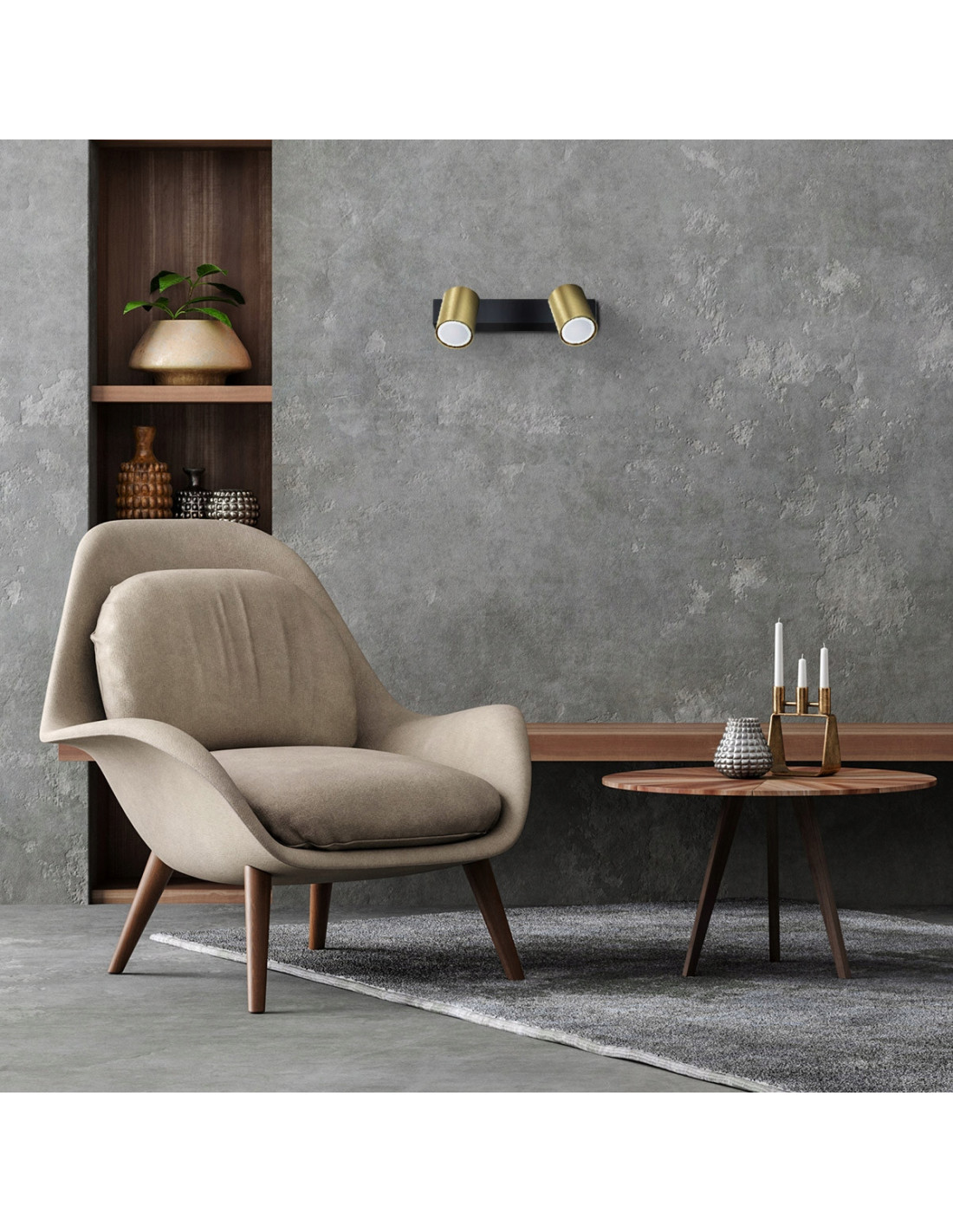 Reflektor Spot Snow wyróżnia się luksusowym wyglądem, który wprowadza do wnętrza nutę elegancji. Jego szczotkowana złota powierzchnia w połączeniu z czarnymi akcentami tworzy harmonijną całość, przyciągając wzrok i nadając pomieszczeniu wyjątkowy klimat. Dzięki podwójnym źródłom światła GU10, o maksymalnej mocy 50W każde, zapewnia odpowiednią ilość światła, co jest niezwykle istotne w przestrzeniach wymagających dobrego oświetlenia.