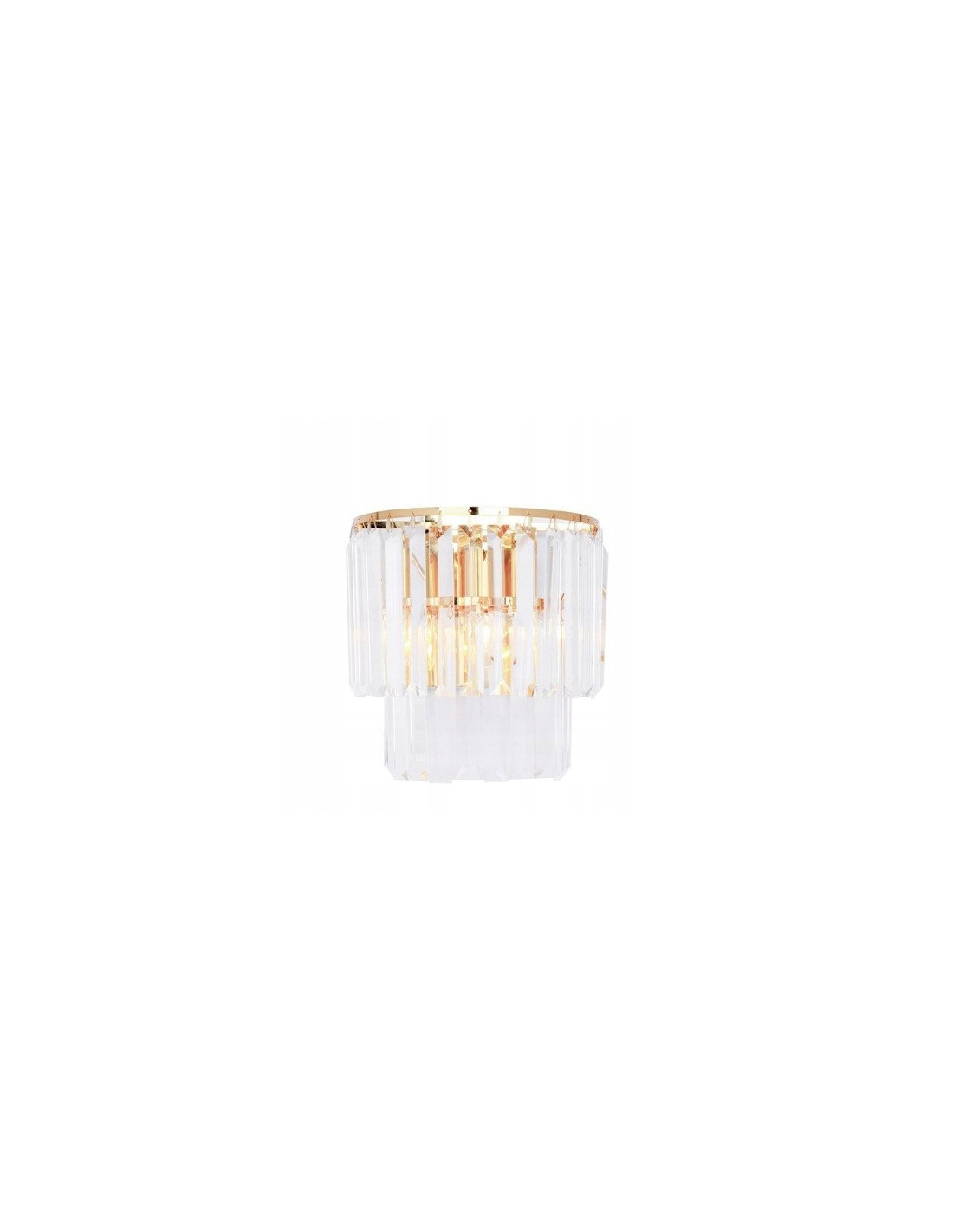 Górna część lampy wykonana jest z metalu o złotym wykończeniu, co dodaje jej blasku i podkreśla jej prestiżowy charakter. Tego typu kinkiet doskonale nadaje się do luksusowych wnętrz, takich jak salon, sypialnia czy elegancki korytarz, gdzie ważne jest połączenie estetyki i funkcjonalności. Kryształowe elementy idealnie rozpraszają światło, dodając blasku pomieszczeniu.