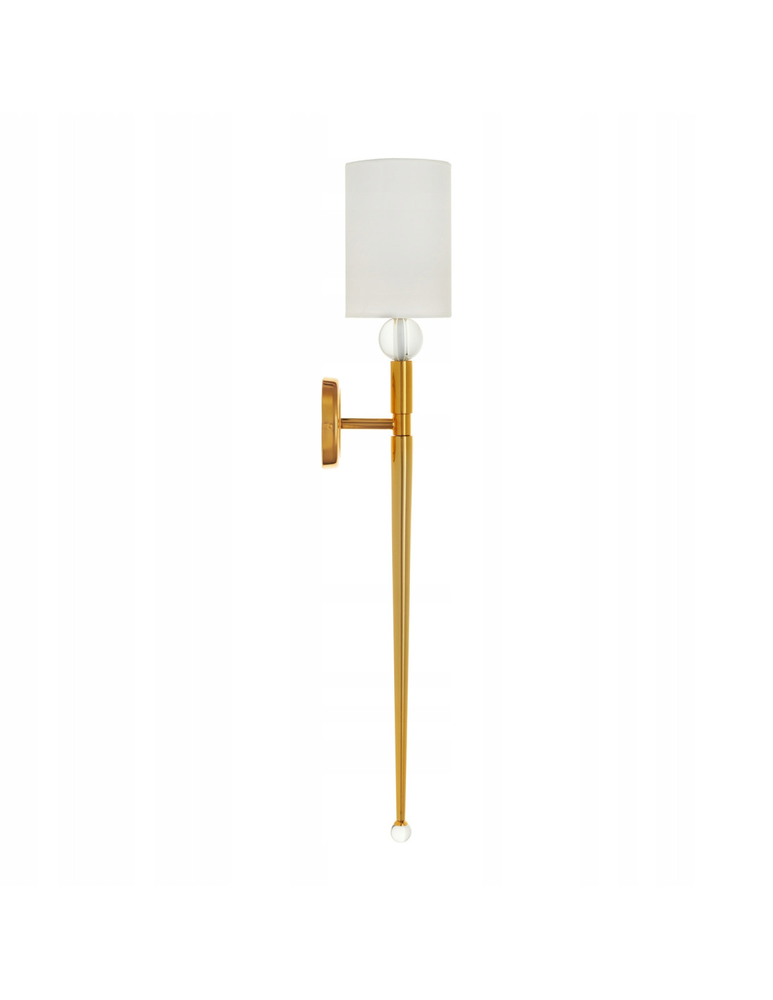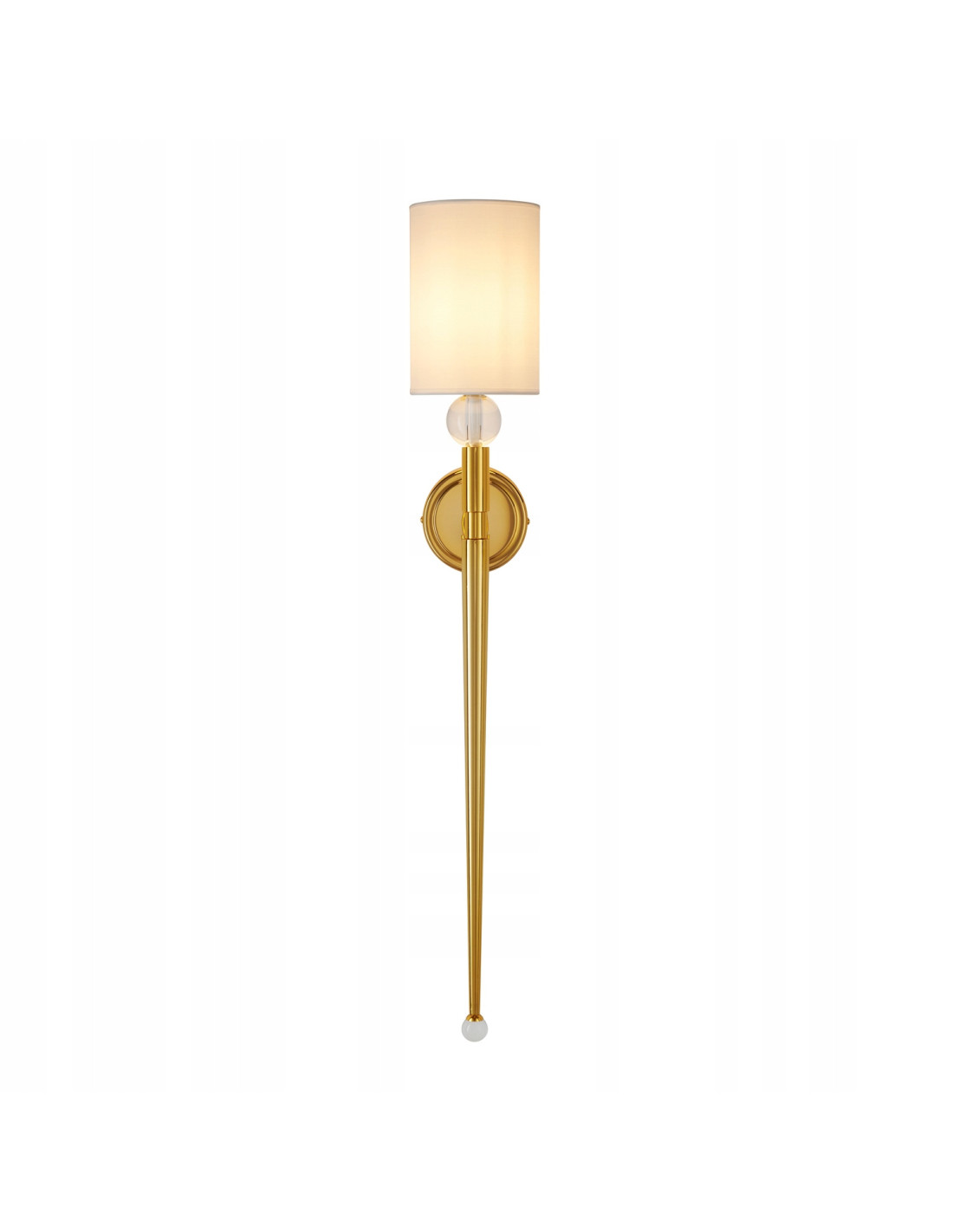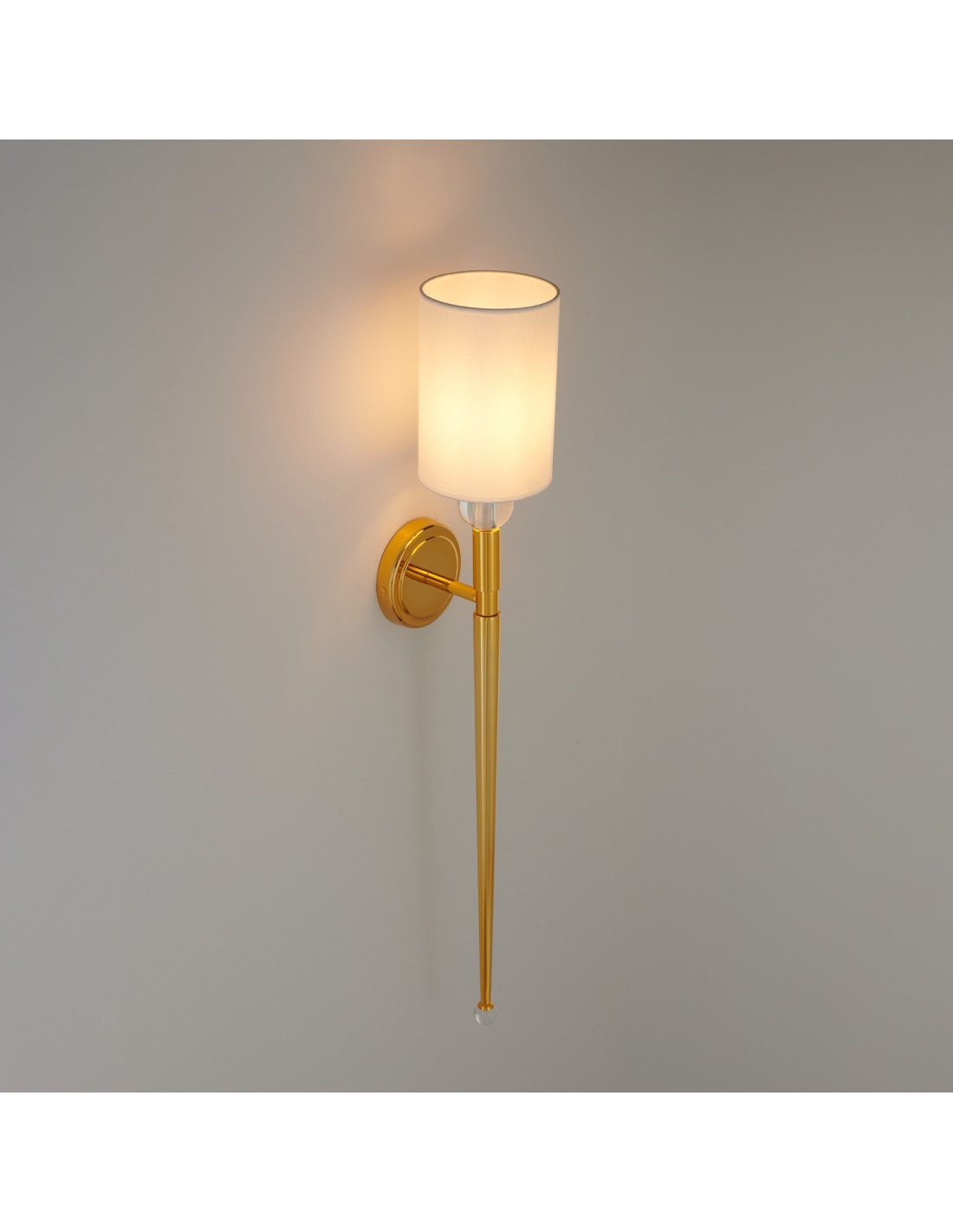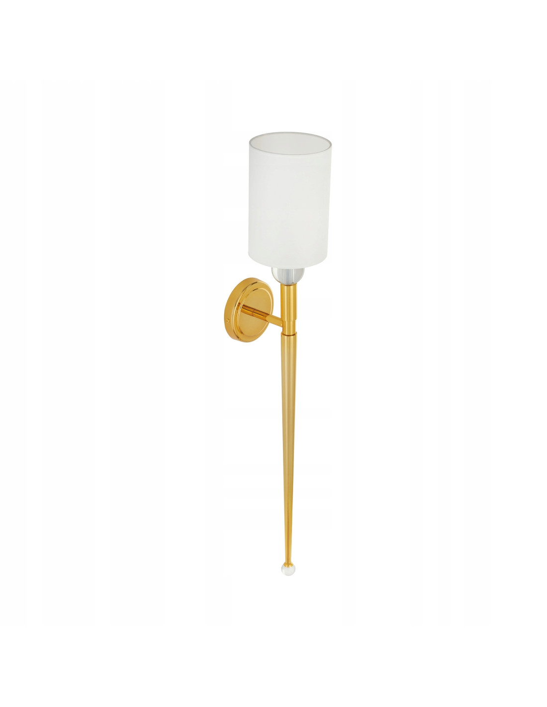 Odkryj wyjątkowy długi kinkiet z abażurem DAMA, który ze swoją estetyką doda niepowtarzalnego charakteru każdemu wnętrzu. Ten elegancki element oświetleniowy z pewnością sprawdzi się w sypialni, jak również w innych przestrzeniach, gdzie pragniesz uzyskać miękkie, rozproszone światło. Prosty, cylindryczny klosz z białego materiału harmonijnie współgra z metalową podstawą w kolorze polerowanego złota, co nadaje mu luksusowego wyglądu.