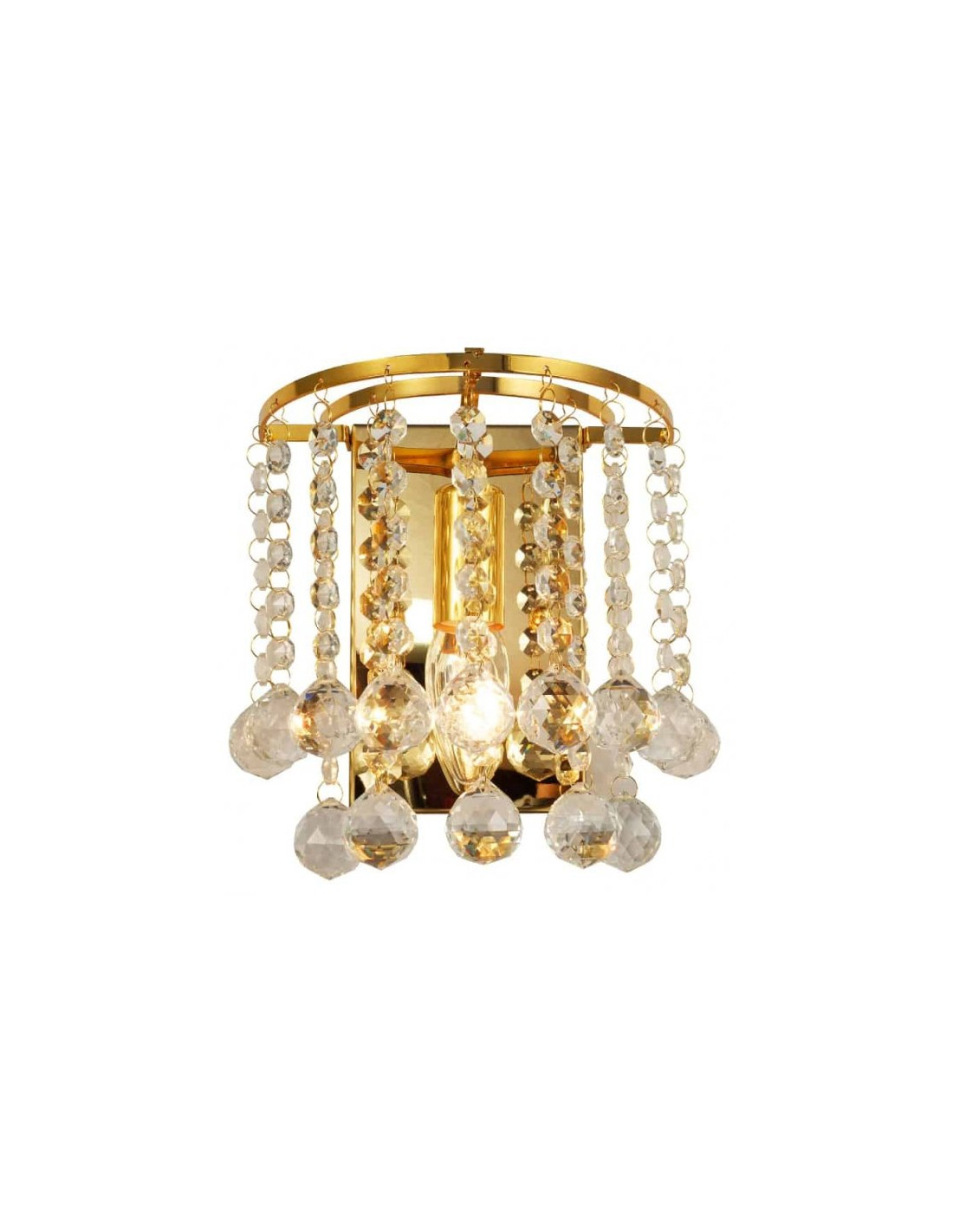 Kinkiet LONDON CRYSTAL to elegancki element oświetleniowy, który doskonale wpasuje się w każde wnętrze, dodając mu luksusowego charakteru. Wykonany z wysokiej jakości materiałów, jego metalowa konstrukcja w złotym kolorze w połączeniu z przezroczystymi kryształkami tworzy efektowne rozproszenie światła, które zachwyci nawet najbardziej wymagających.