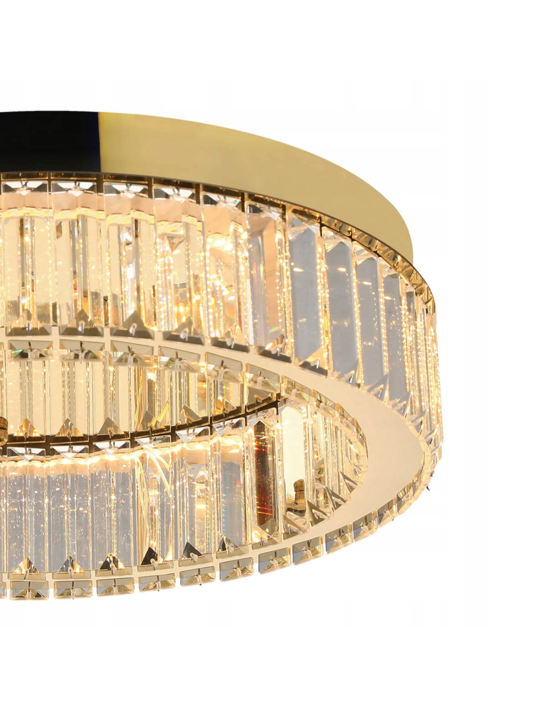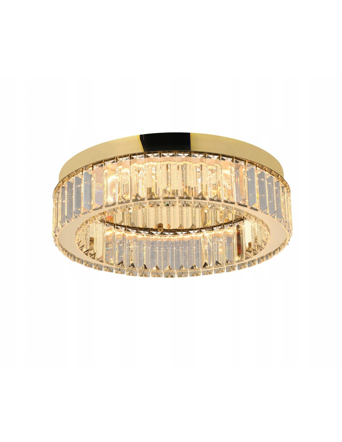 Wprowadź do swojego wnętrza elegancję i luksus dzięki plafonowi glamour SPARK TOP. To wyjątkowe oświetlenie w złotym wykończeniu doskonale komponuje się z nowoczesnym designem, zapewniając unikalny blask w Twoim domu. Jego kryształowe elementy rozpraszają światło w sposób, który tworzy niezwykłą atmosferę, idealną dla sypialni, salonu czy jadalni.