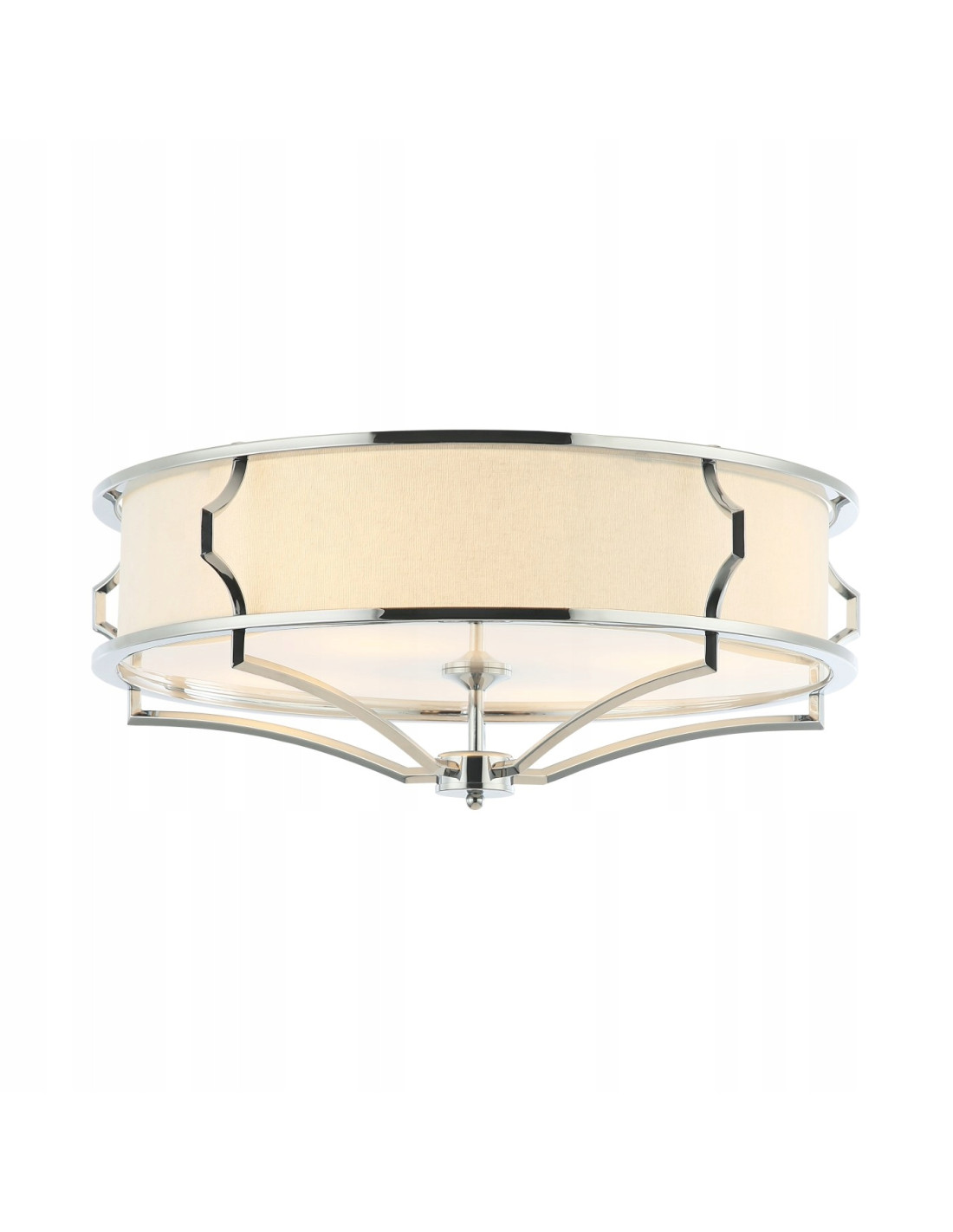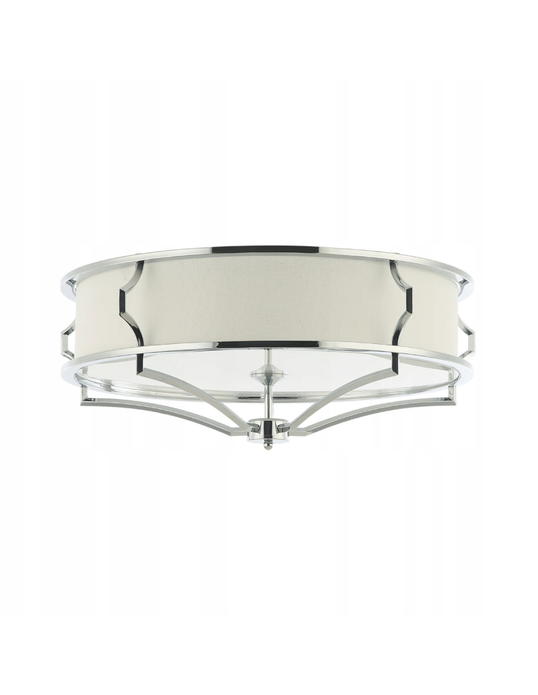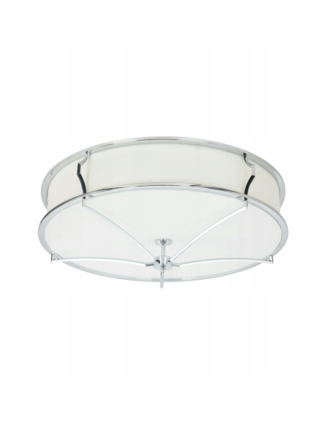 Model ten składa się z geometrycznej, chromowanej oprawy, która dodaje całości nowoczesnego charakteru. W połączeniu z białym matowym szkłem oraz kremowym kloszem, tworzy harmonijną całość. Wymiary lampy, wynoszące 23 cm wysokości i 65 cm szerokości, sprawiają, że jest ona odpowiednia do różnych typów pomieszczeń, nie przytłaczając ich przestrzeni.