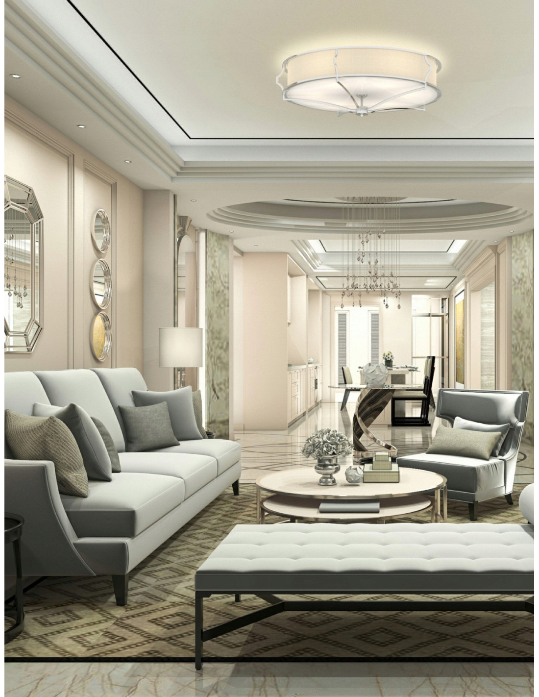 Żyrandol Stesso PL Cromo M to wyjątkowy element oświetleniowy, który wprowadza do wnętrza niezrównaną elegancję i styl retro. Jego wyrafinowane połączenie bieli i srebra sprawia, że idealnie wpisuje się w nowoczesne oraz klasyczne aranżacje. Zainspirowany estetyką lat 20. i 30., żyrandol ten przyciąga wzrok oraz stanowi doskonałe dopełnienie pomieszczeń urządzonych w stylu glamour i modern classic.
