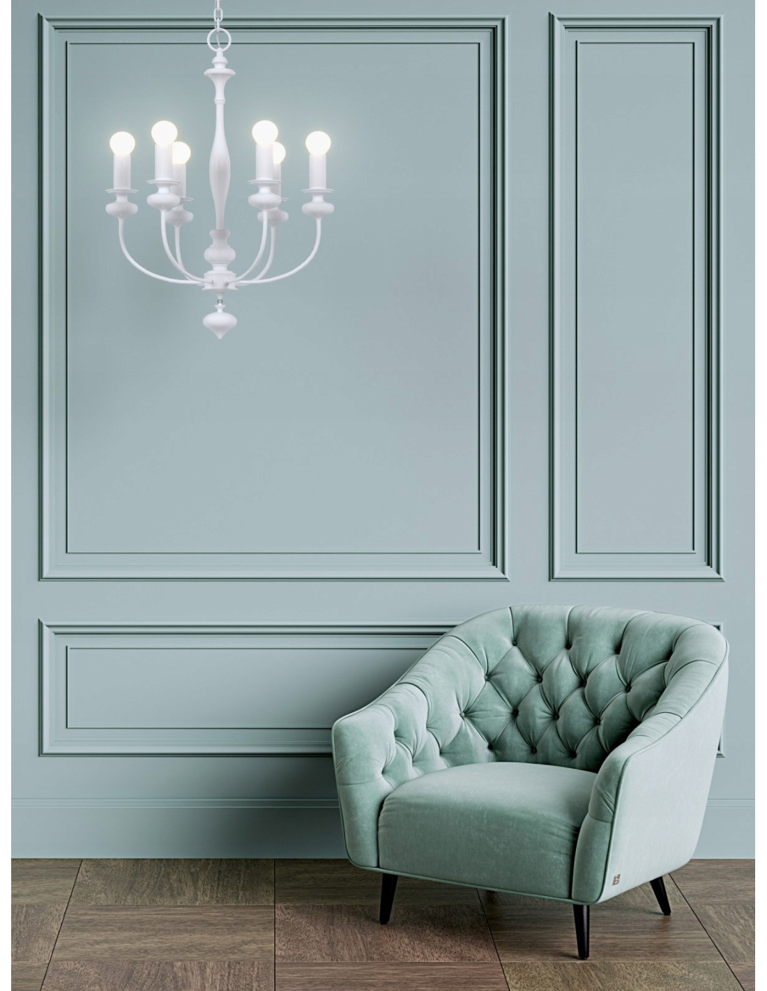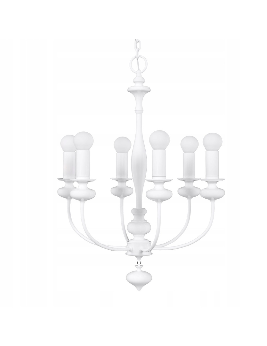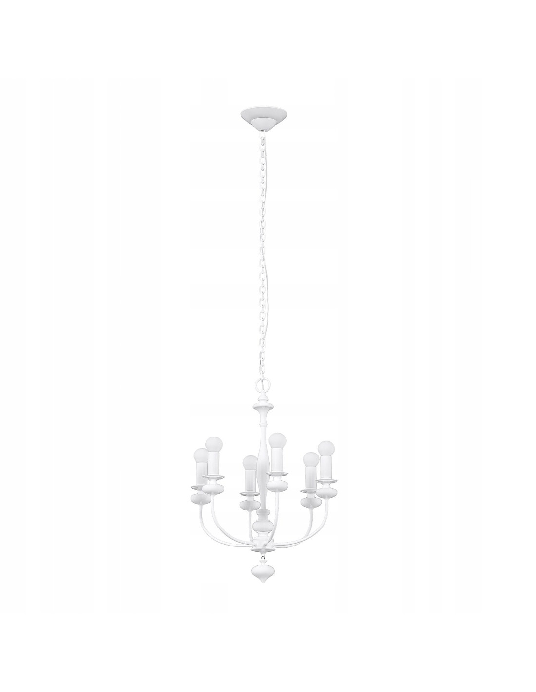 Żyrandol Castella to rustykalna lampa, która emanuje ciepłem i przytulnością. Posiada sześć świeczników, które zapewniają równomierne oświetlenie przestrzeni, a ich promieniste ramiona nadają lampie wrażenie lekkości. Dzięki temu staje się doskonałym wyborem do salonu, jadalni czy sypialni.