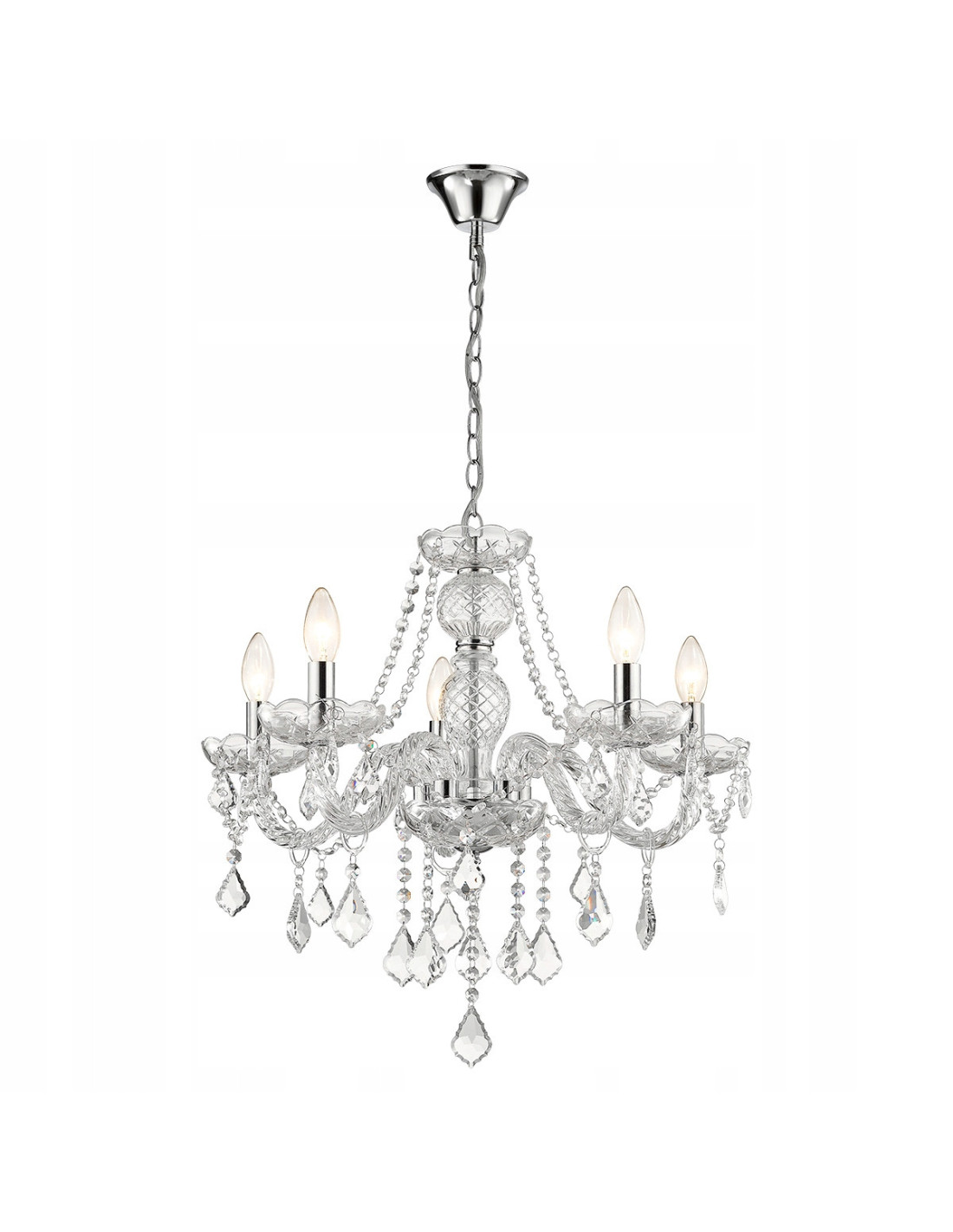 Specyfikacja techniczna żyrandola to kolejny atut tego produktu. Wyposażony w pięć punktów świetlnych z gwintem E14, umożliwia zastosowanie źródeł światła o mocy do 60W. Należy jednak pamiętać, że żyrandol nie zawiera źródła światła w komplecie. Dodatkowo, dzięki klasie efektywności energetycznej A, Cristallo zapewnia oszczędność energii, co jest istotne w kontekście ochrony środowiska oraz redukcji rachunków za prąd.