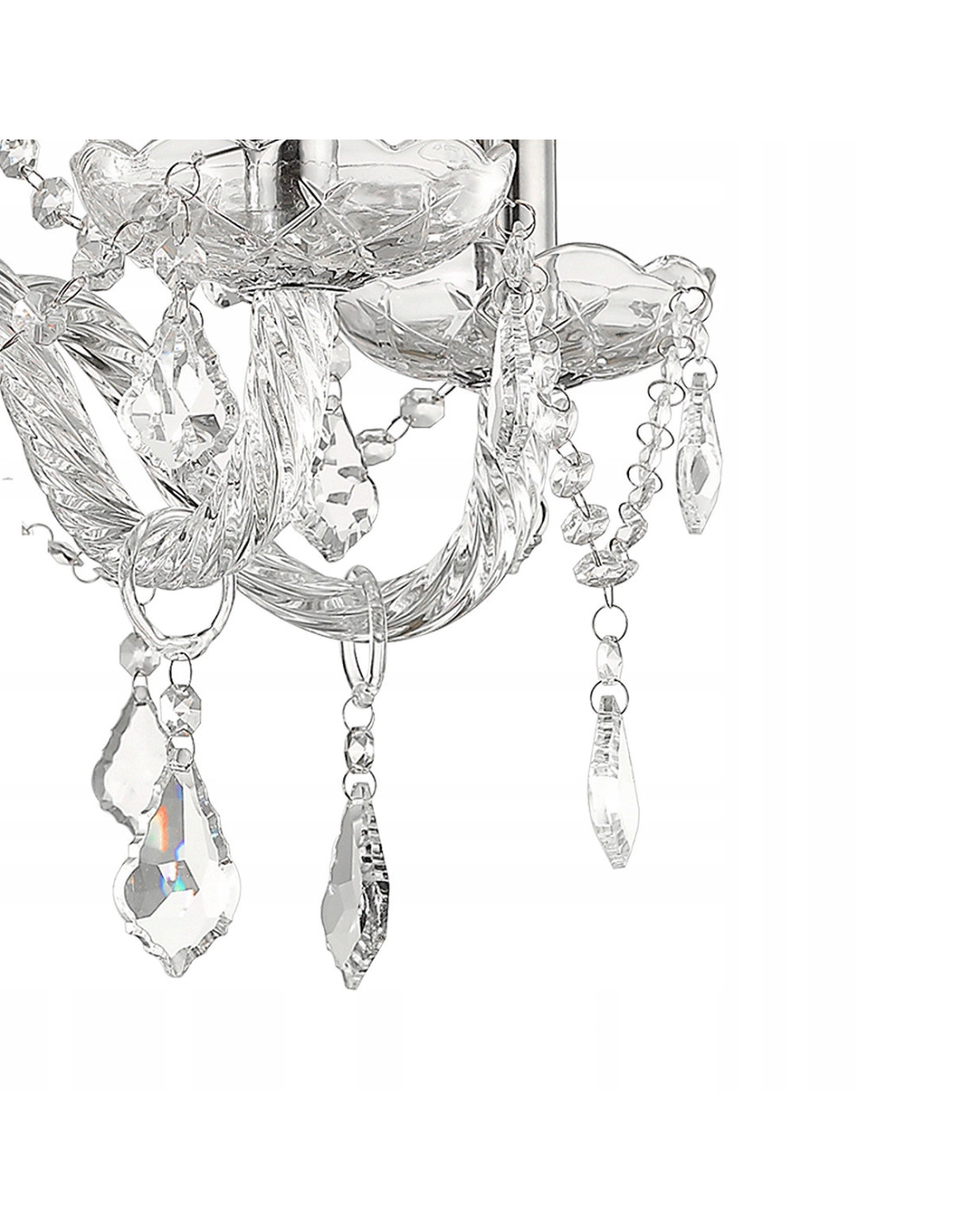 Kluczowym elementem oświetlenia są wiszące kryształki, które efektywnie rozpraszają światło, tworząc tym samym wyjątkowy klimat w każdych warunkach. Dodatkowo kryształki pełnią rolę dekoracyjnego akcentu, przyciągającego uwagę i dodającego stylu.