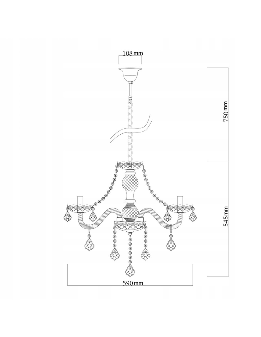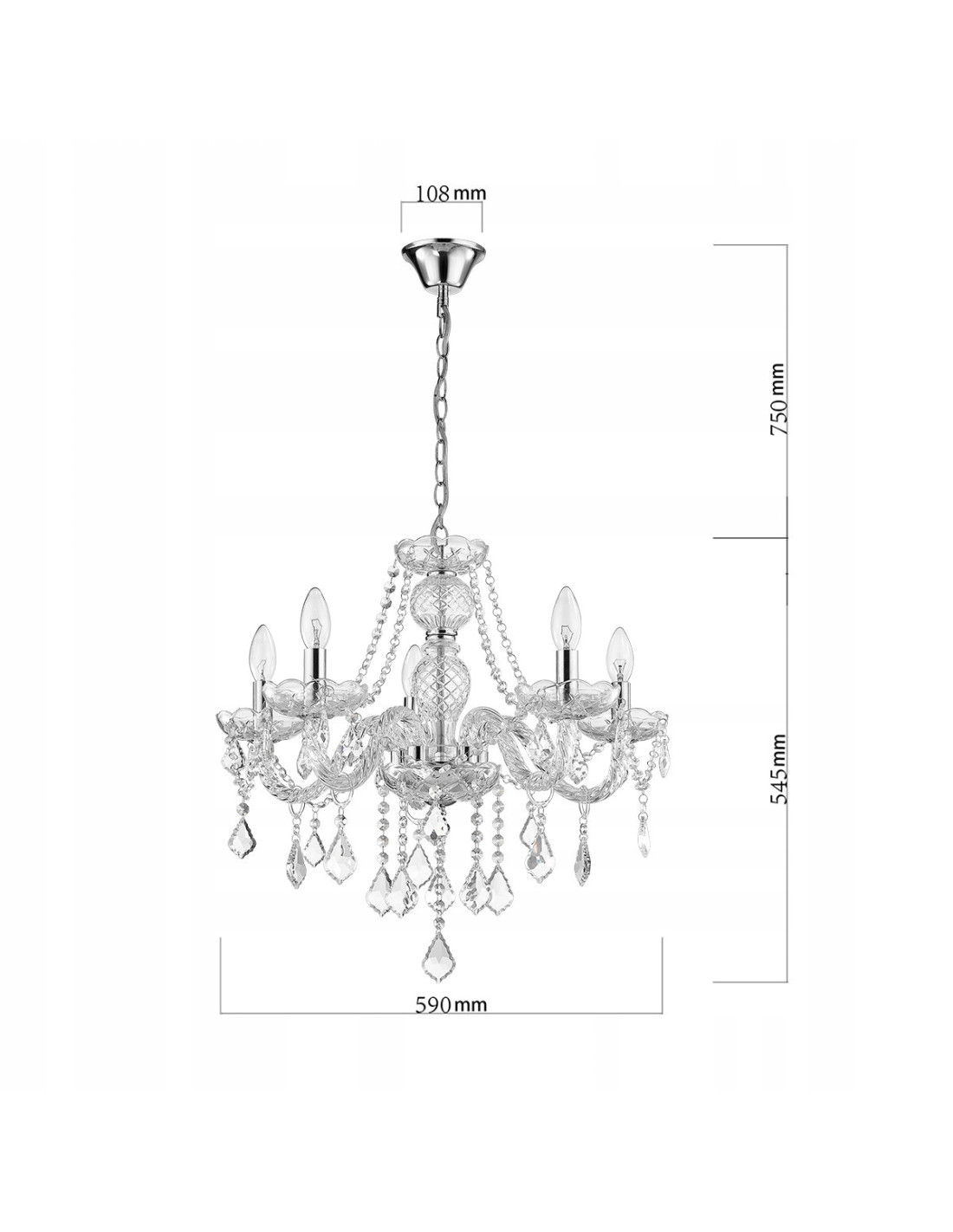 Żyrandol z kolekcji Cristallo oferuje możliwość regulacji wysokości, co pozwala na idealne dostosowanie do indywidualnych potrzeb oraz charakteru pomieszczenia. Przy maksymalnej wysokości 130 cm i szerokości 56 cm, jego rozmiar czyni go wszechstronnym rozwiązaniem, które znajdzie zastosowanie zarówno w niewielkich, jak i większych przestrzeniach.