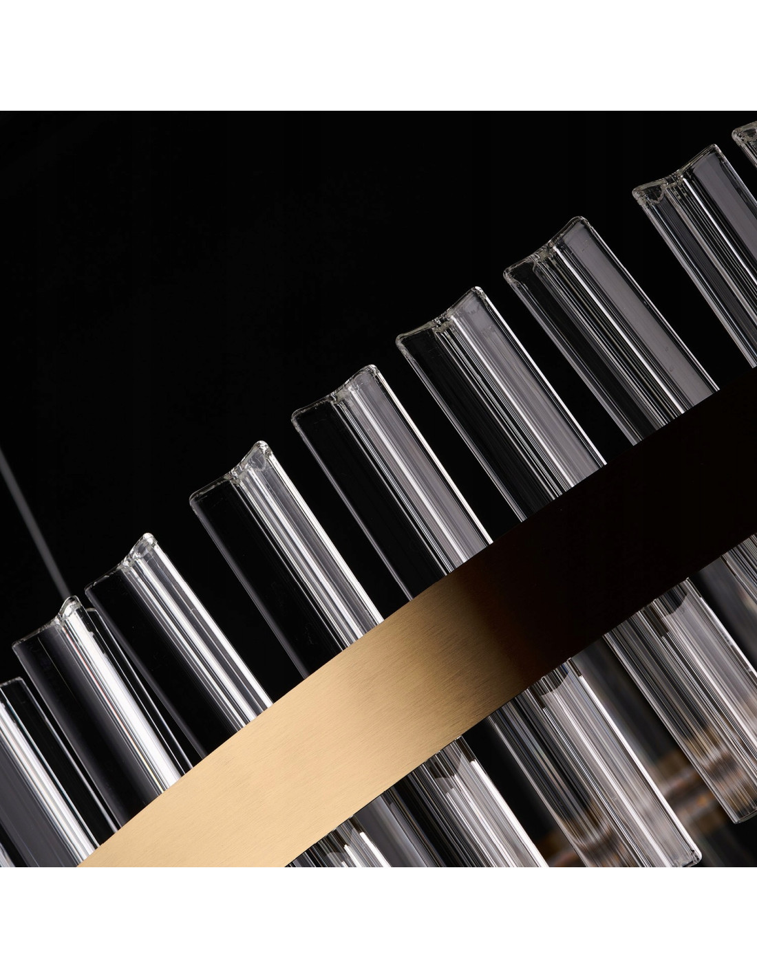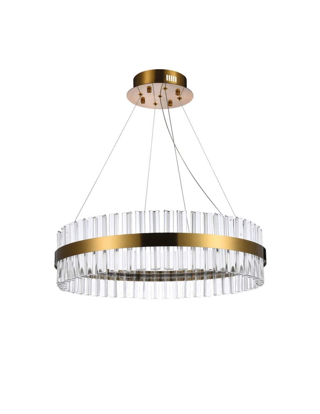 Materiał, z którego został wyprodukowany żyrandol, to szkło i metal, co zapewnia nie tylko estetykę, ale także trwałość. Integracja źródła LED pozwala na oszczędności w energii, a barwa światła 3000K tworzy przytulną i ciepłą atmosferę. Wysoka jasność o wartości 2770 lumenów sprawia, że nawet największe pomieszczenia zostaną skutecznie oświetlone.