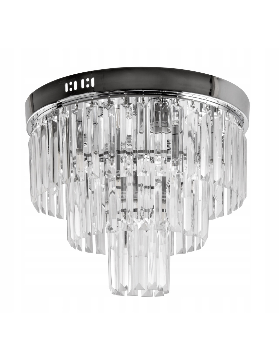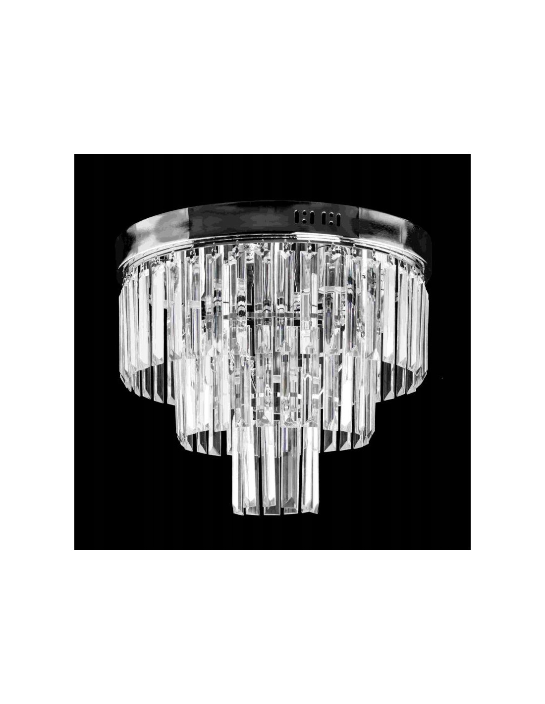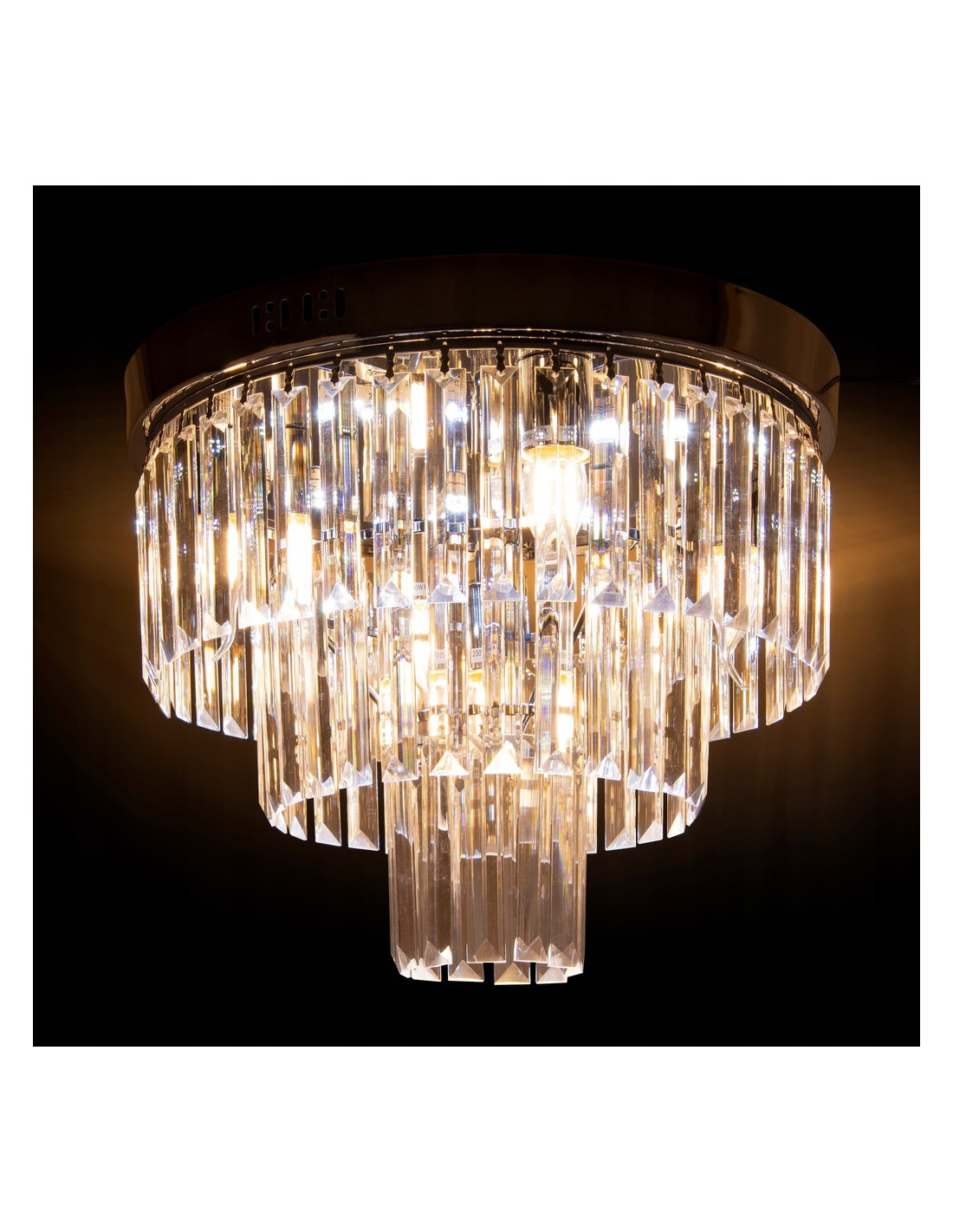 Żyrandol charakteryzuje się trzema poziomami zawieszonych kryształów, które w połączeniu z chromowanym wykończeniem sprawiają, że całość prezentuje się niezwykle efektownie. Światło, które przenika przez kryształy, tworzy niepowtarzalne efekty świetlne, dodając pomieszczeniom elegancji i szyku. To idealna propozycja dla osób poszukujących lampy, która będzie zarówno funkcjonalna, jak i ozdobna.
