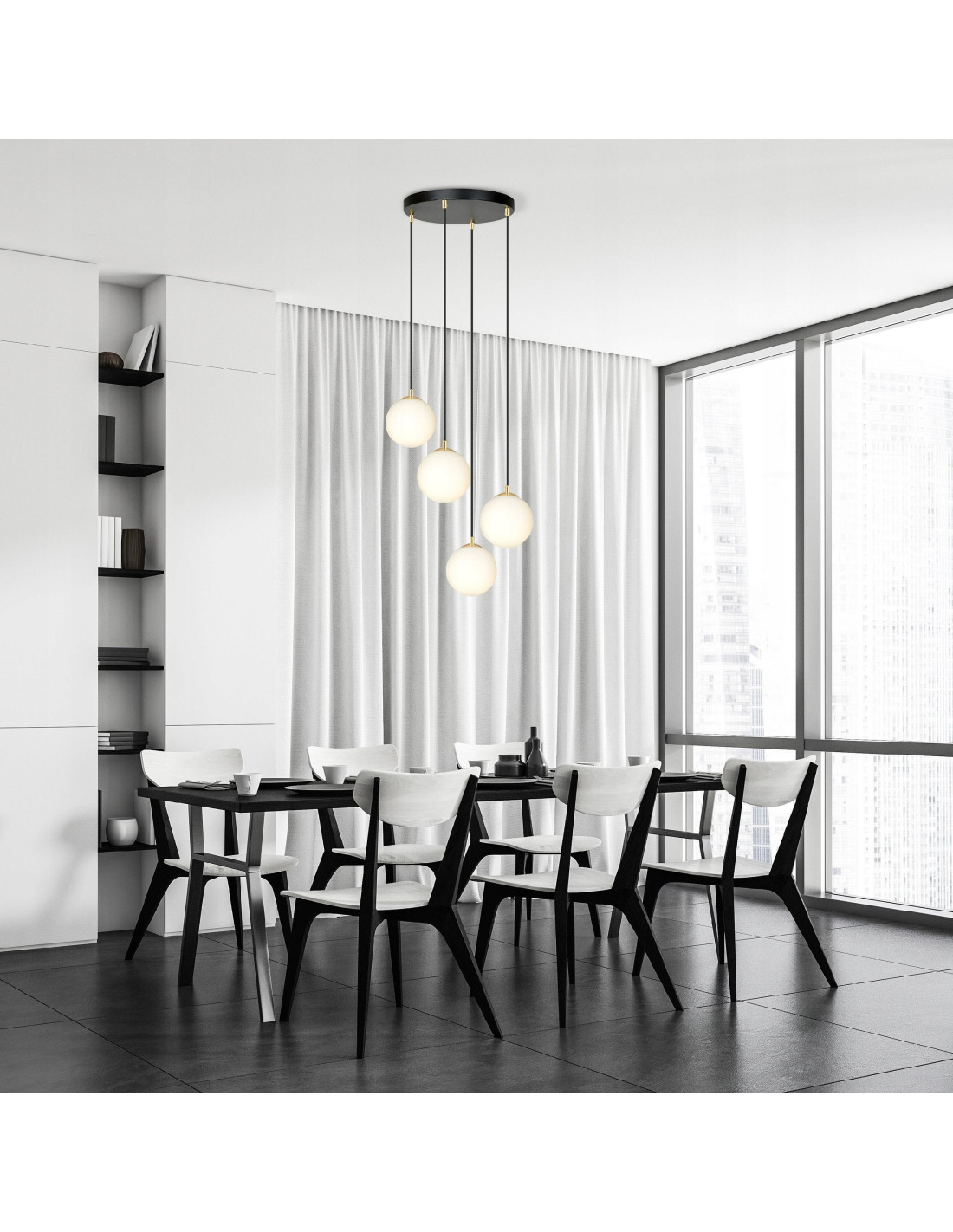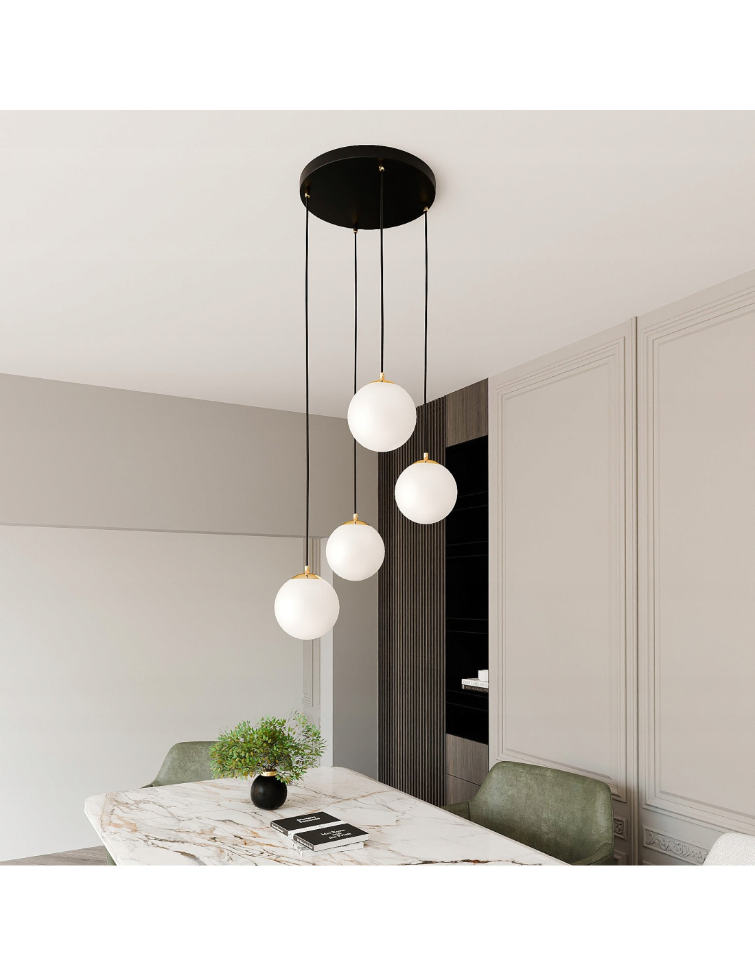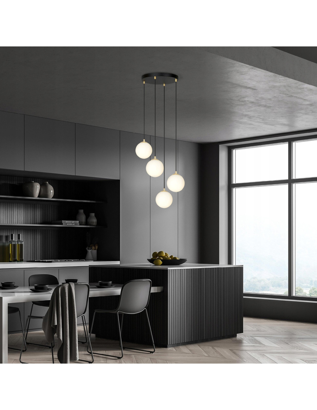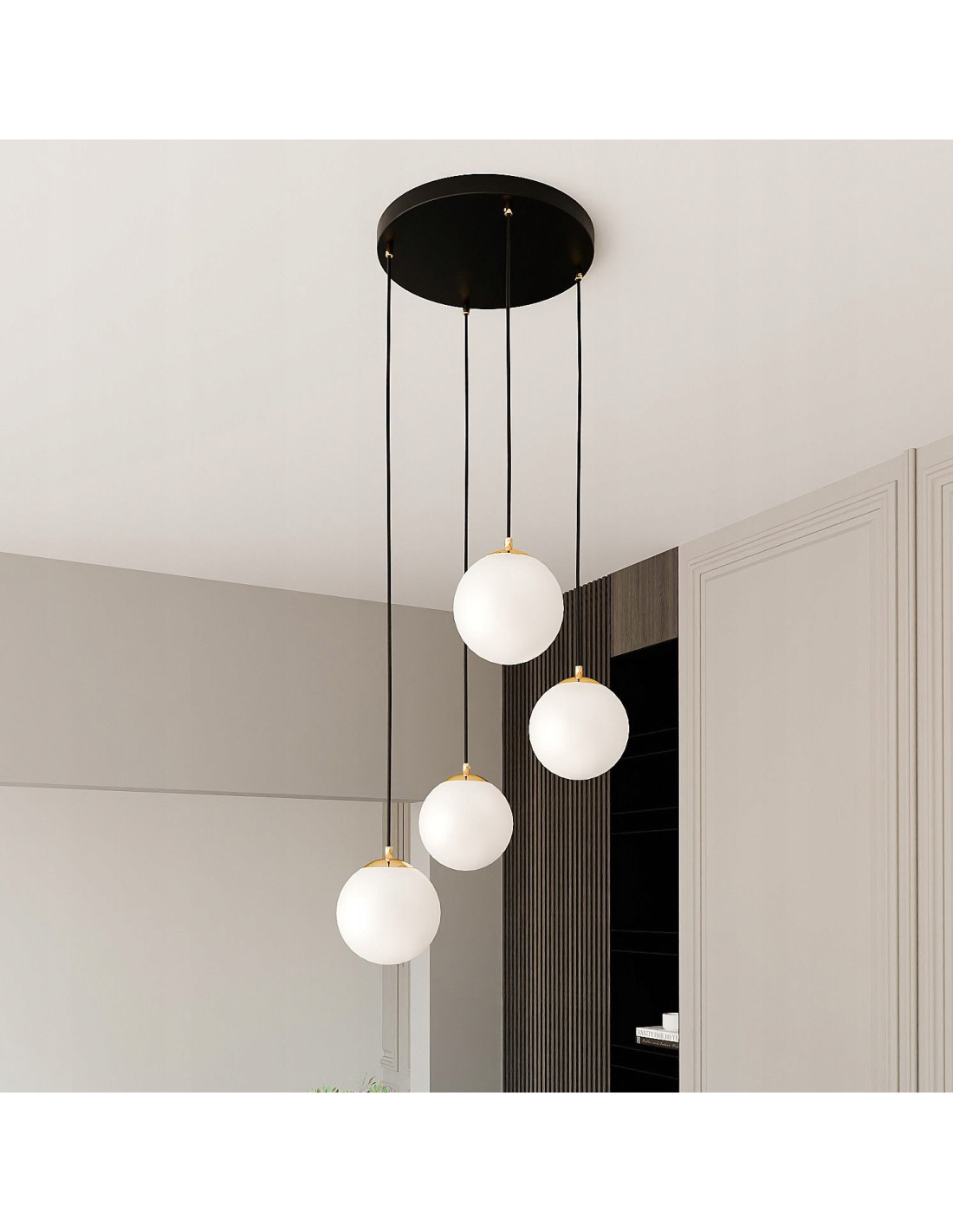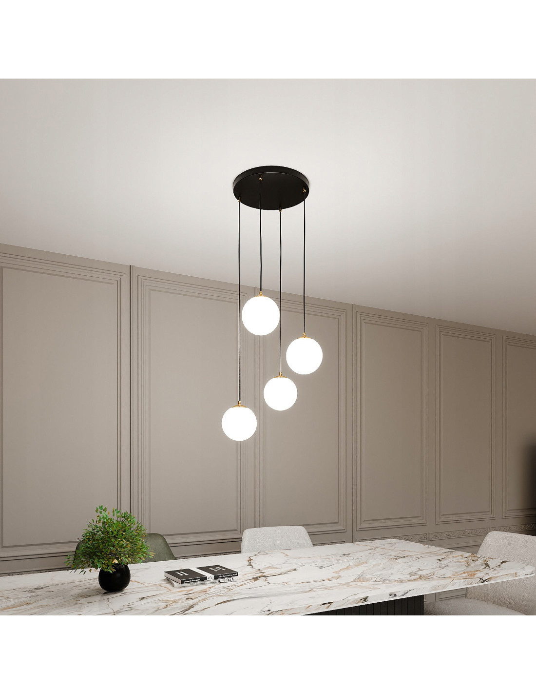 Klosze wykonane z szkła nadają lampie subtelnej lekkości i elegancji, jednocześnie tworząc rozświetlenie, które wprowadza przytulną atmosferę do wnętrz. Cztery punkty świetlne sprawią, że każde pomieszczenie będzie odpowiednio doświetlone, dzięki czemu można cieszyć się zarówno funkcjonalnością, jak i estetyką naszego wnętrza.