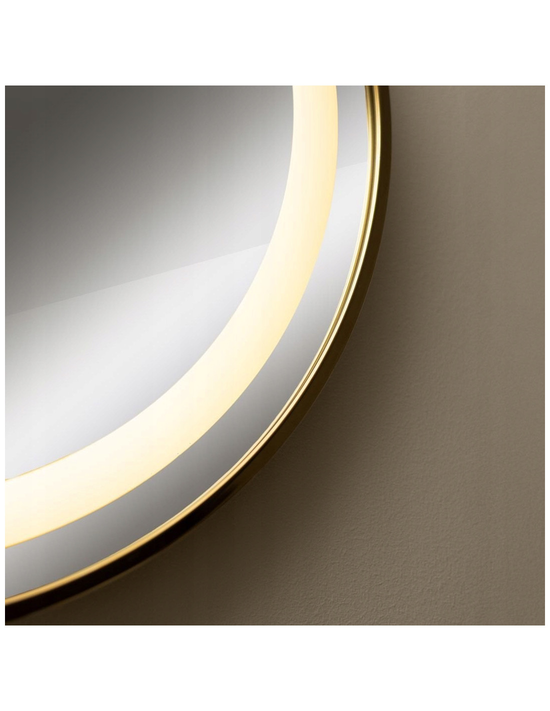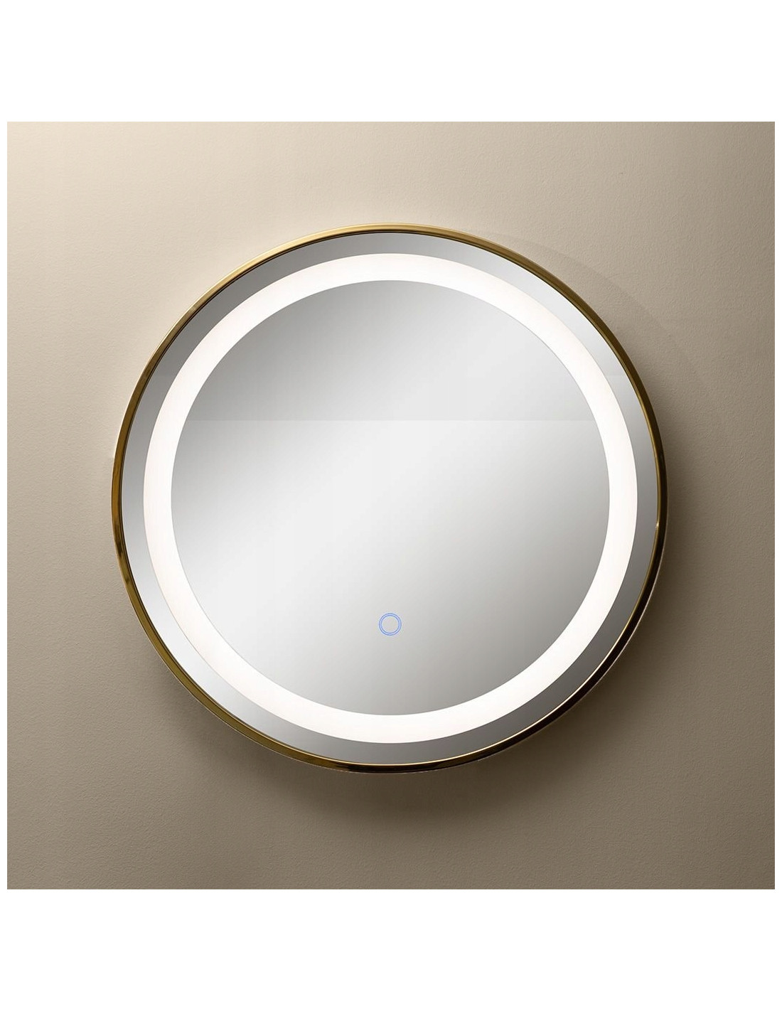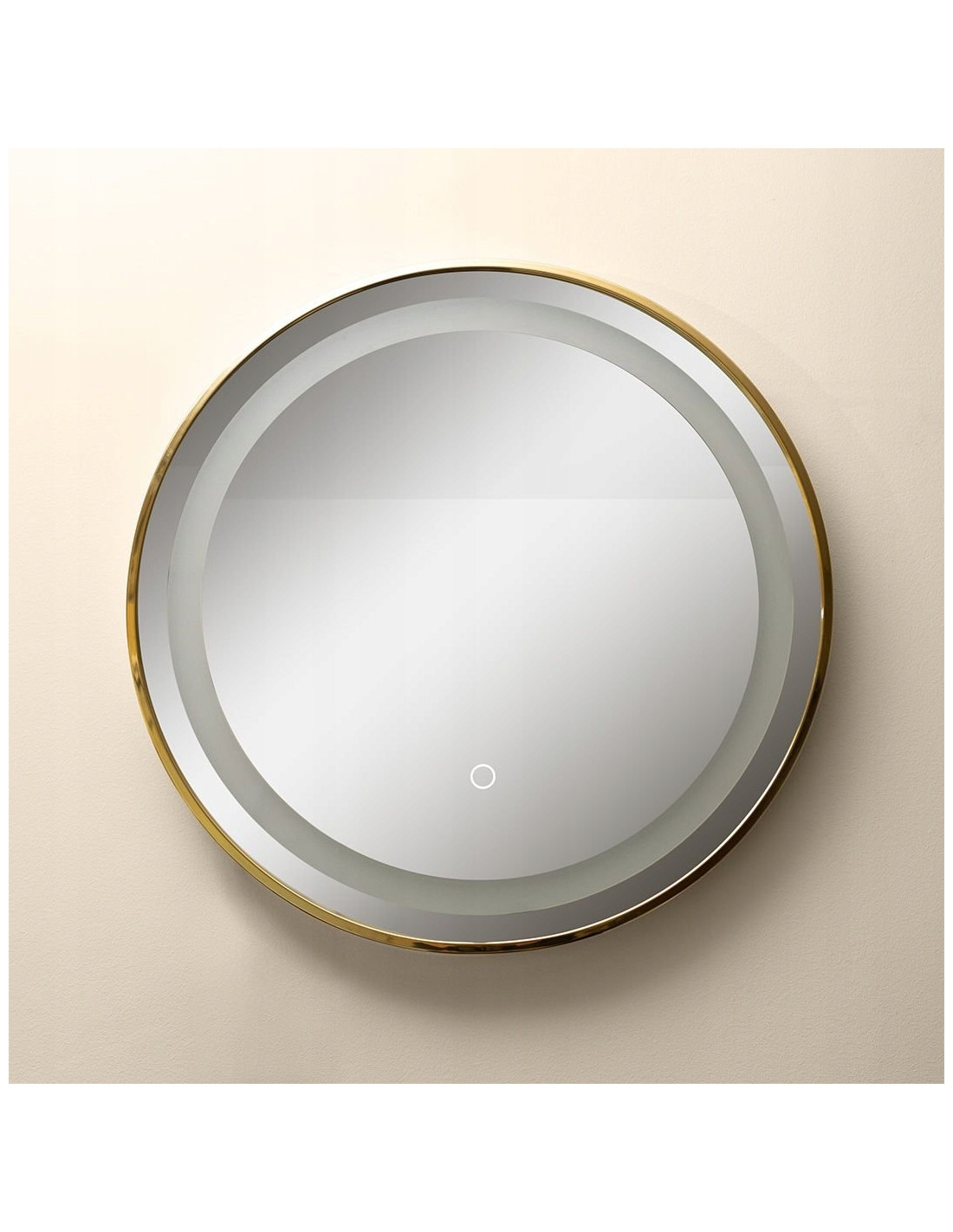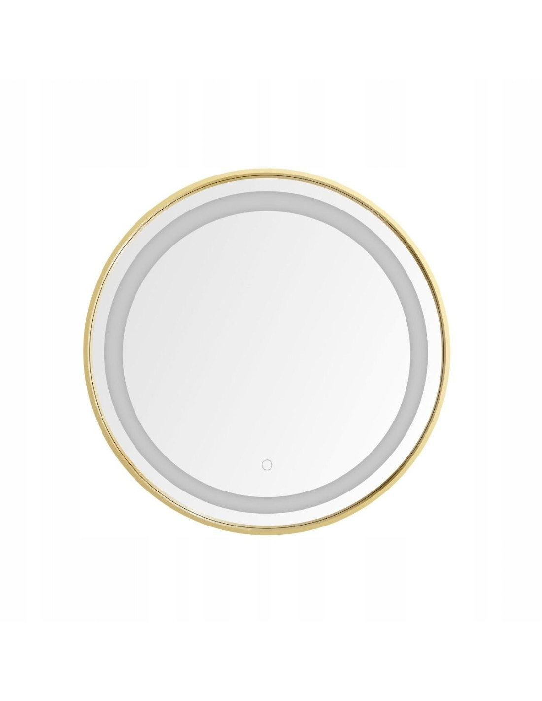 Eleganckie lustro łazienkowe z oświetleniem LED to doskonały dodatek do każdej nowoczesnej łazienki. Dzięki swojemu minimalistycznemu designowi oraz złotej ramce, lustro nie tylko spełnia funkcje praktyczne, ale również staje się ważnym elementem dekoracyjnym. Okrągły kształt oraz eleganckie wykończenie sprawiają, że idealnie wpisuje się w różnorodne aranżacje wnętrz.