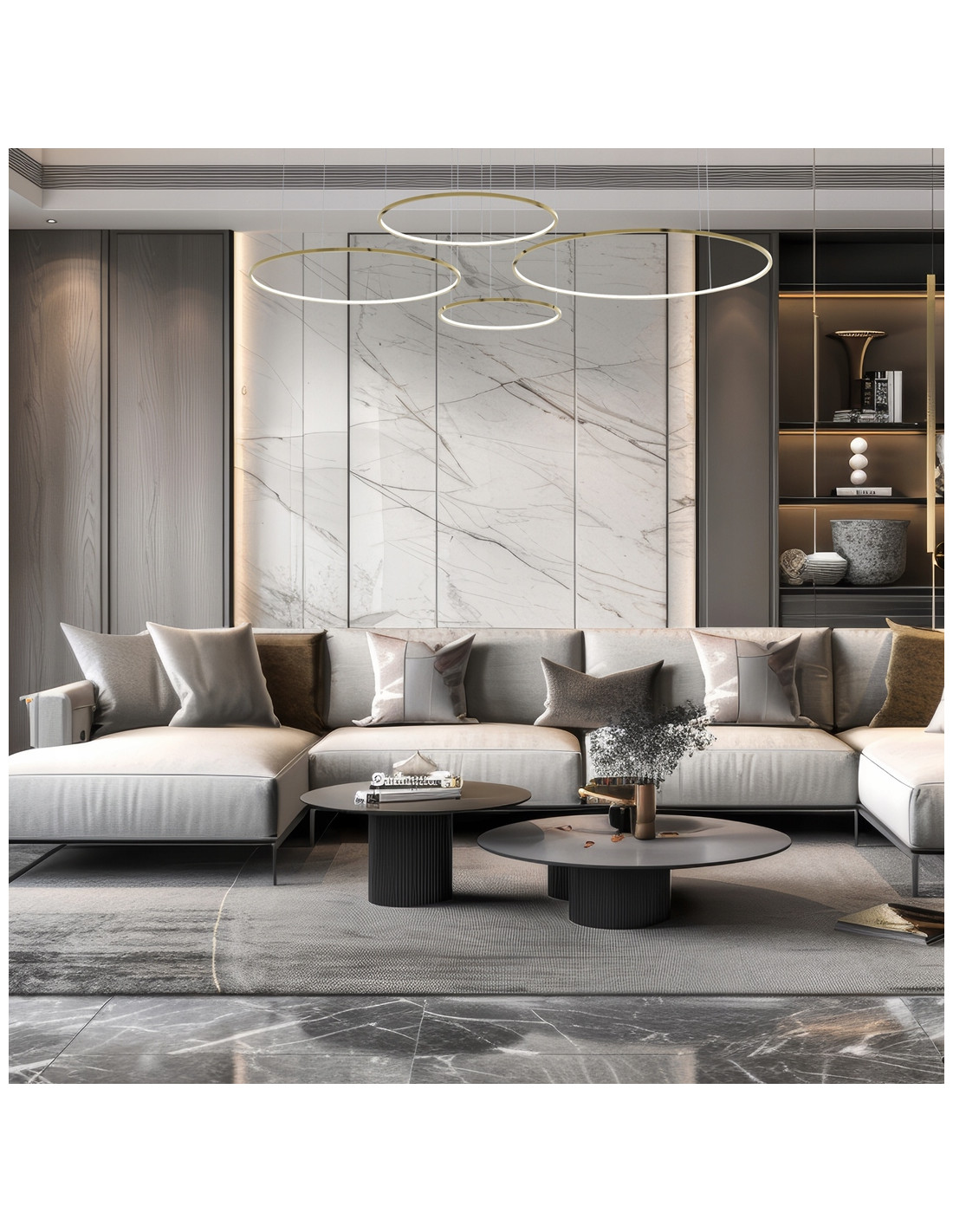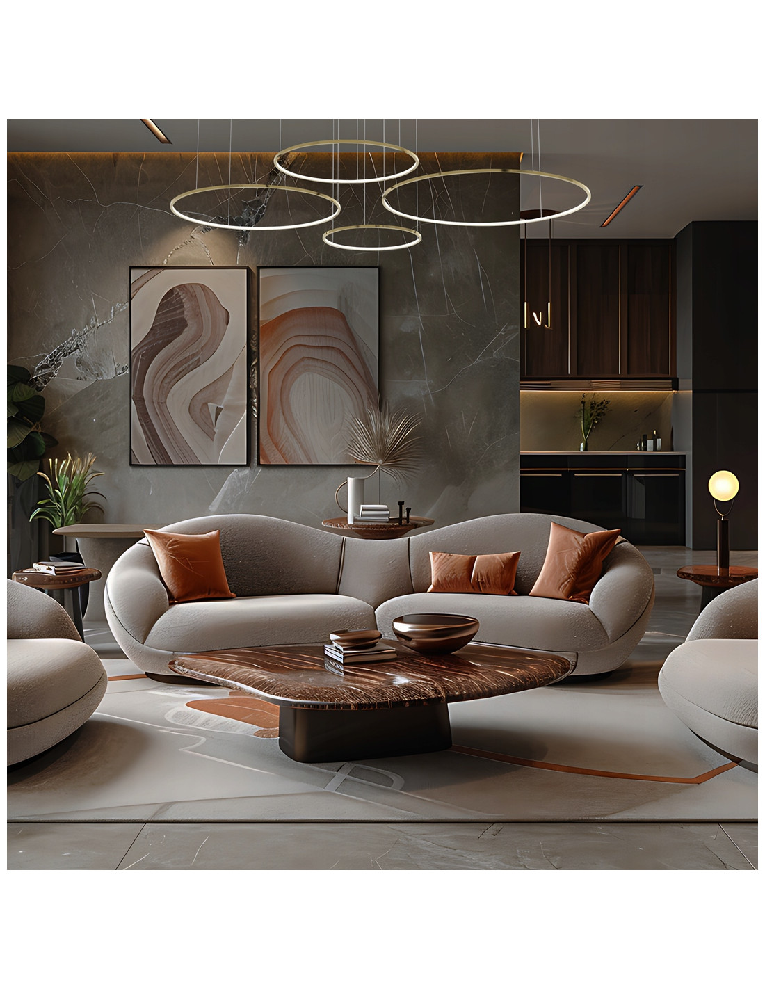 Lampa wisząca Saturno Gold to propozycja dla osób poszukujących połączenia nowoczesnego designu z eleganckim, glamour wykończeniem. Subtelna forma pierścieniowego klosza w kolorze matowego złota nadaje wnętrzom szyku, jednocześnie zapewniając równomierne i przyjemne światło o barwie neutralnej 4000K. Produkt świetnie sprawdzi się nad dużym stołem w jadalni, w przestronnym salonie oraz w reprezentacyjnym biurze.
