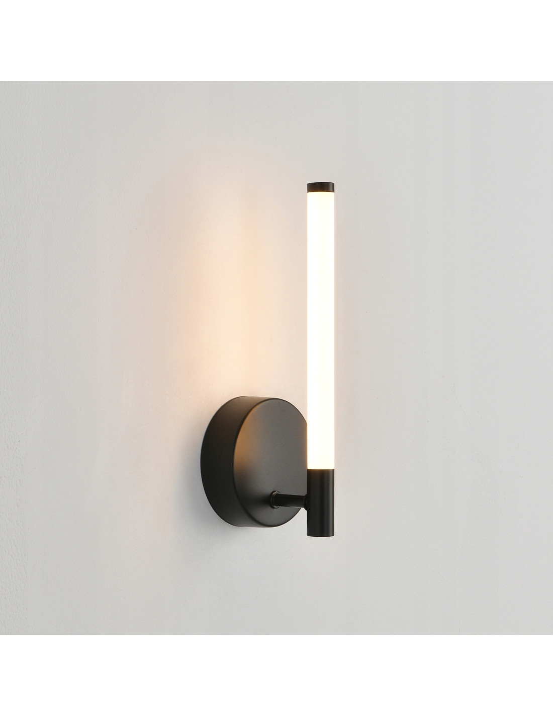 Każdy detal kinkietu CLODE został starannie przemyślany. Składa się on z okragłej, czarnej bazy, która przylega do ściany oraz długiego, białego klosza w kształcie tuby. Klosz zaczepiony jest o bazę za pomocą cieńkiego, czarnego ramienia, które dodaje lekkości całej konstrukcji. Ta kombinacja sprawia, że kinkiet nie tylko spełnia funkcję praktyczną, ale również jest estetycznym elementem dekoracyjnym.