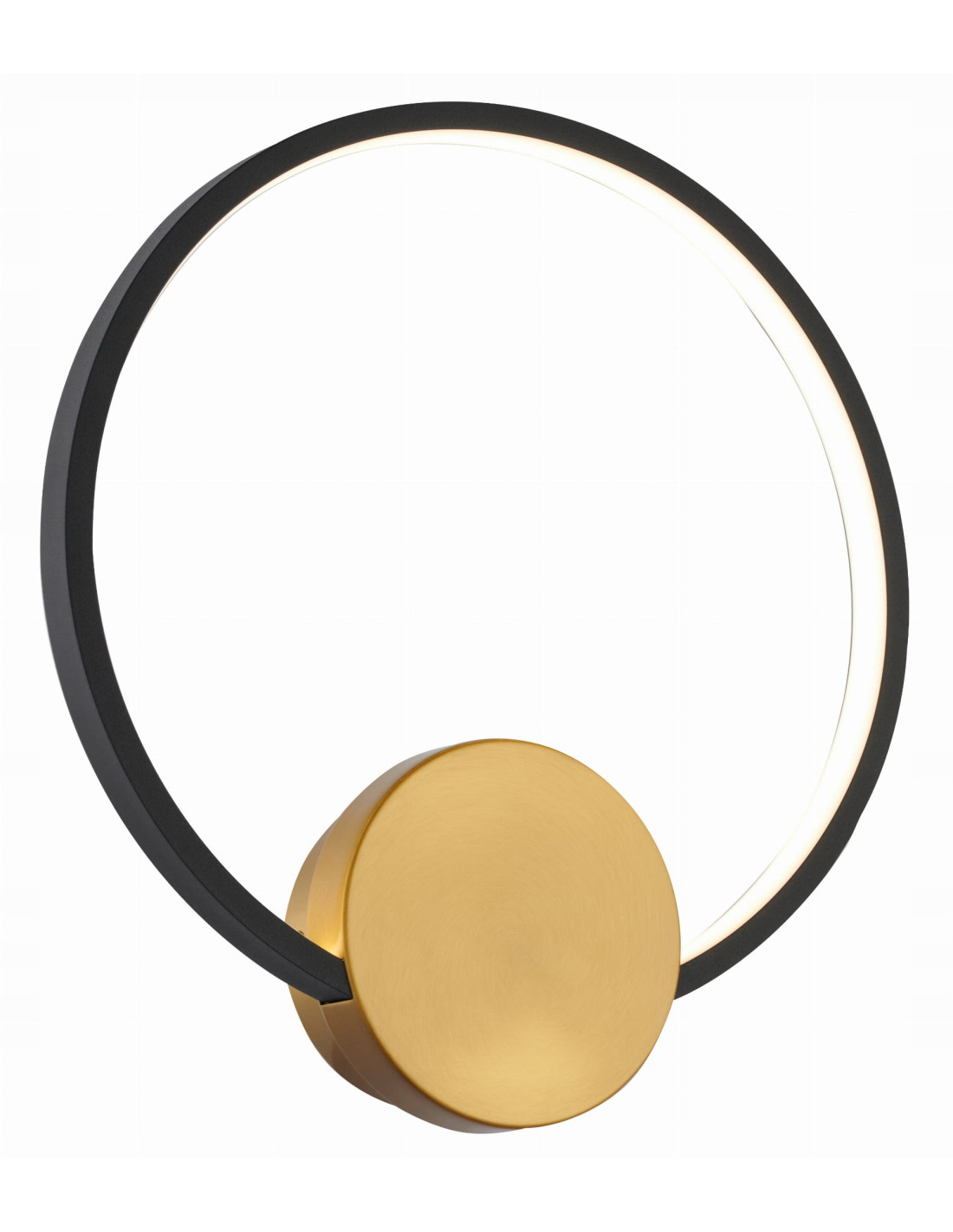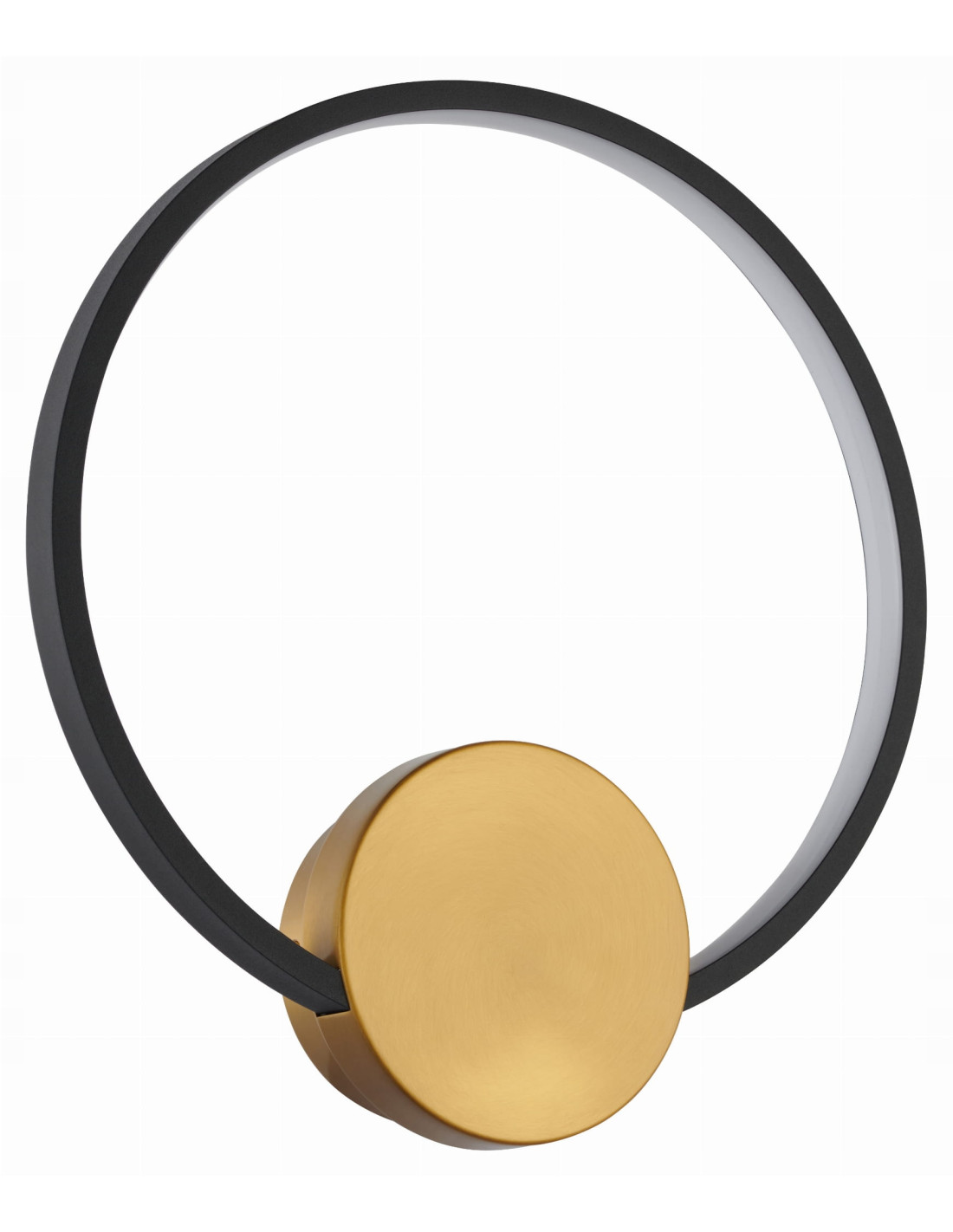 Condida to lampa o okrągłym, czarnym mocowaniu u dołu oraz złotej obręczy, która sprawia, że produkt ten przyciąga wzrok i stanowi efektowną ozdobę wnętrza. Cienka i gładka forma obręczy dodaje jej nowoczesnego charakteru, a kontrast pomiędzy złotym a czarnym kolorem podkreśla elegancję oraz prostotę formy. Dzięki tym walorom, lampa Condida idealnie wkomponuje się w różnorodne aranżacje wnętrz.