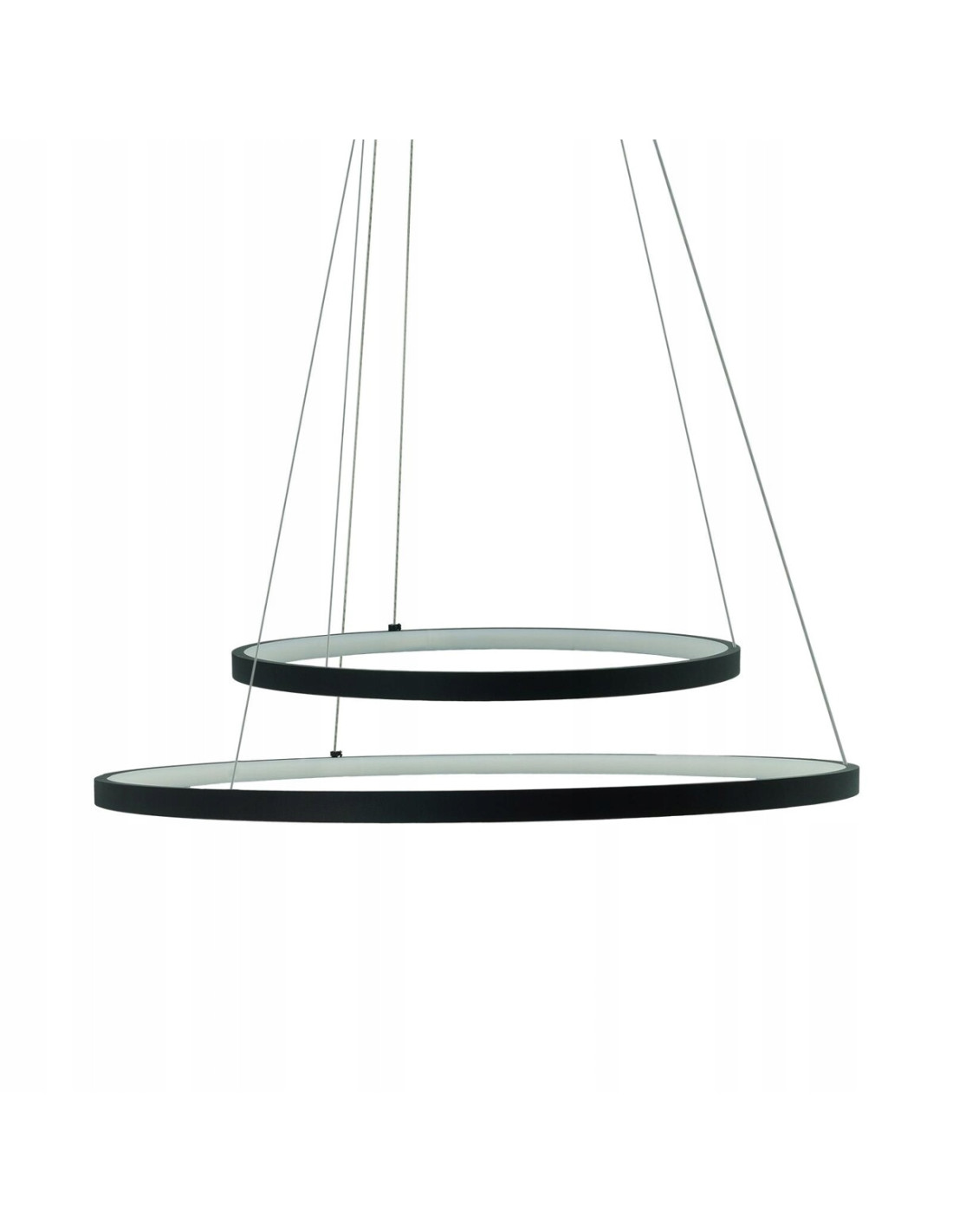 Wymiary lampy są również imponujące, z wysokością wynoszącą 110 cm oraz szerokością 60 cm. Dwa okrągłe ringi różnej średnicy (400 mm i 600 mm) harmonijnie ze sobą współgrają, tworząc efektowne źródło światła w każdym pomieszczeniu. Materiał zastosowany w lampie to metal, co zapewnia jej trwałość i estetykę.