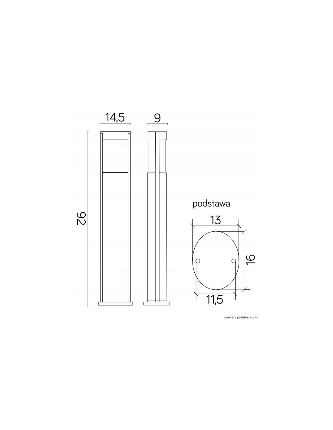 Wysokość 92 cm oraz smukłe, estetyczne wzornictwo sprawiają, że słupek lampy przyciąga wzrok, będąc jednocześnie funkcjonalnym elementem oświetlenia. Wykonany z aluminium, produkt jest odporny na niesprzyjające warunki atmosferyczne, co zapewnia długotrwałe użytkowanie oraz komfort eksploatacji. Klasa szczelności IP54 gwarantuje, że lampa poradzi sobie w różnych warunkach pogodowych, skutecznie chroniąc wewnętrzne komponenty przed wilgocią i kurzem.