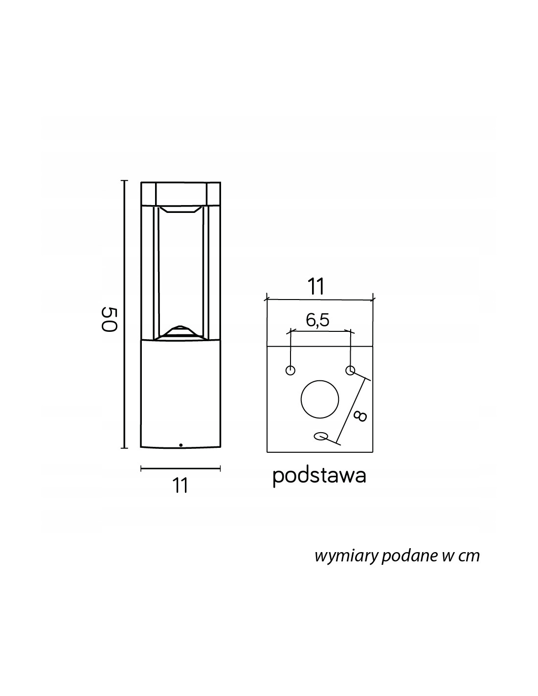Model FKW-500 charakteryzuje się wysokością 50 cm oraz niewielkimi wymiarami – szerokość 11 cm i głębokość 11 cm. Taka konstrukcja pozwala na łatwe umiejscowienie lampy w różnych miejscach. Lampa sprawdzi się doskonale jako oświetlenie drogi dojazdowej do posesji lub element dekoracyjny w większych przestrzeniach ogrodowych.