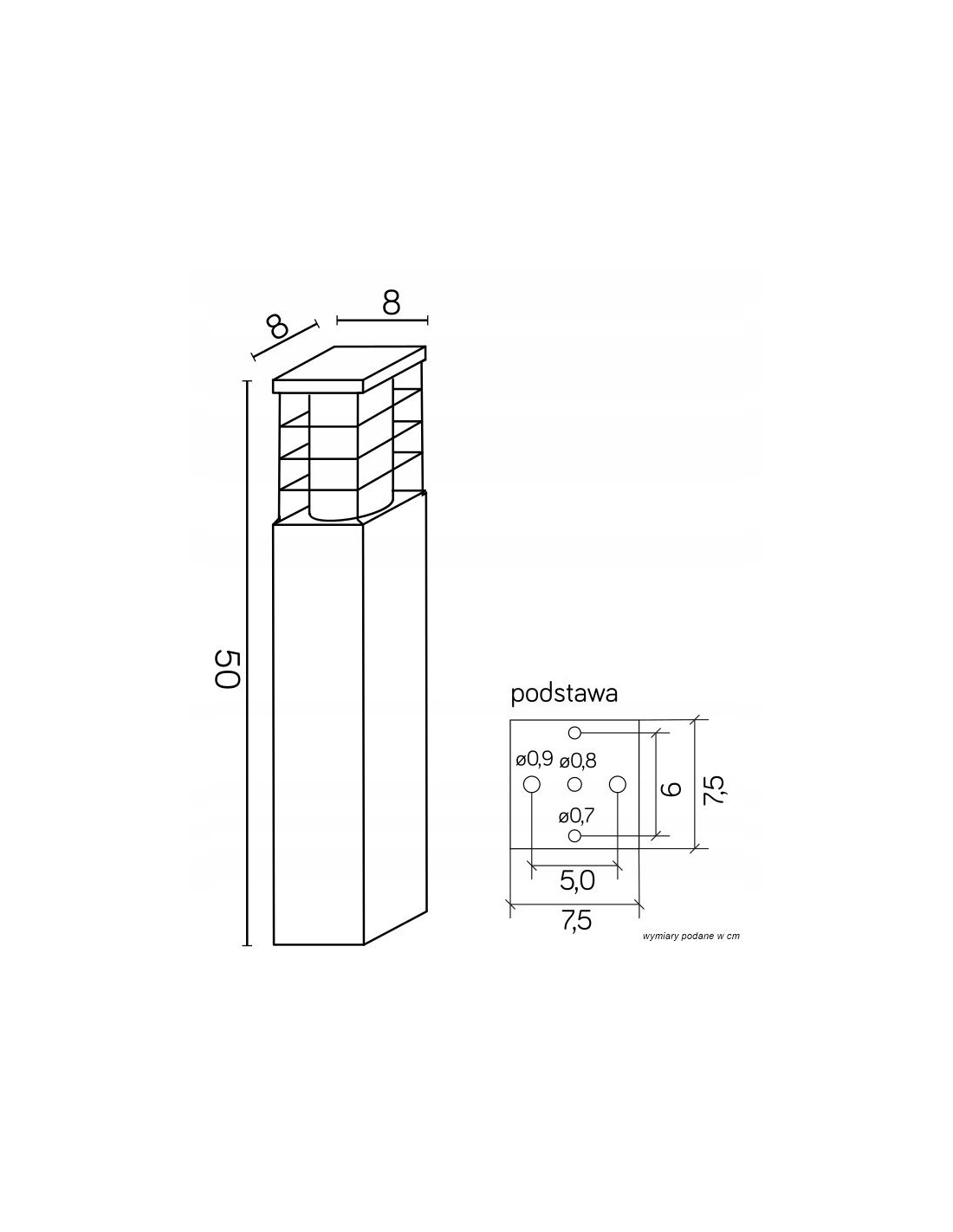 Wysokość 50 cm oraz szerokość i głębokość wynosząca 8 cm sprawiają, że lampa jest odpowiednia do różnych zastosowań. Zapewnia efektywne oświetlenie zarówno ścieżek, jak i wjazdów do garażu. Dzięki stopniowi ochrony IP54, produkt jest odporny na działanie wilgoci i pyłu, co gwarantuje jego długotrwałość i niezawodność w różnych warunkach atmosferycznych.