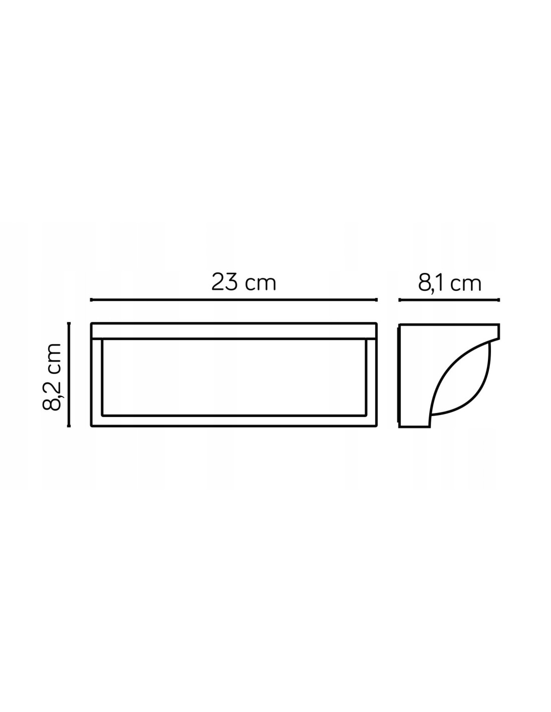 Wymiary lampy są dostosowane do różnorodnych zastosowań, a jej kompaktowe rozmiary sprawiają, że można ją łatwo zamontować. Posiada następujące wymiary: wysokość 8,2 cm, szerokość 23 cm oraz głębokość 8,1 cm, co czyni ją praktycznym dodatkiem do każdego ogrodu, tarasu czy balkonu.