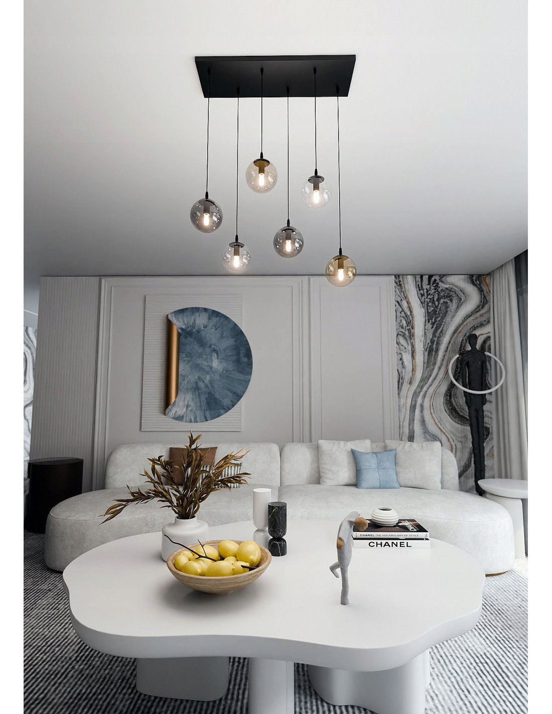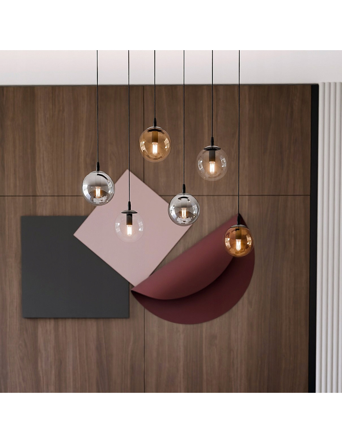 Lampa COSMO wyróżnia się nie tylko nowoczesnym stylem, ale również funkcjonalnością. Wyposażona w 6 punktów świetlnych na tradycyjne żarówki E14 o mocy do 10W każda, zapewnia odpowiednią ilość światła, co czyni ją praktycznym rozwiązaniem do dużych przestrzeni. Dodatkowo, dzięki możliwości wyboru kolorów kloszy, możesz z łatwością dopasować lampę do swojego stylu i potrzeb oświetleniowych.