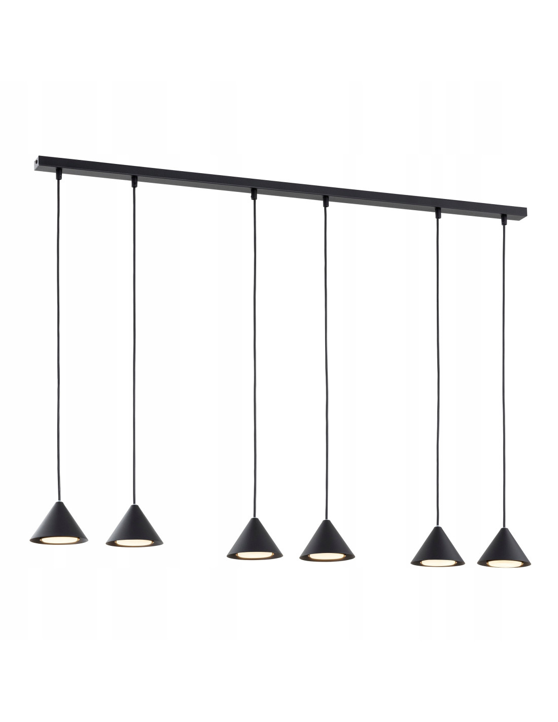 Długa czarna lampa ze stożkowymi kloszami nad stół ELIT 6 BLACK to połączenie nowoczesności i elegancji, które z pewnością zachwyci każdego miłośnika oryginalnego designu. Jej minimalistyczna forma oraz estetyka sprawiają, że świetnie wpisuje się w różnorodne aranżacje wnętrz, w tym nowoczesne biura, eleganckie jadalnie oraz przytulne salony. Klasa i prostota tej lampy tworzą wyjątkowy produkt, który doda charakteru każdemu pomieszczeniu.
