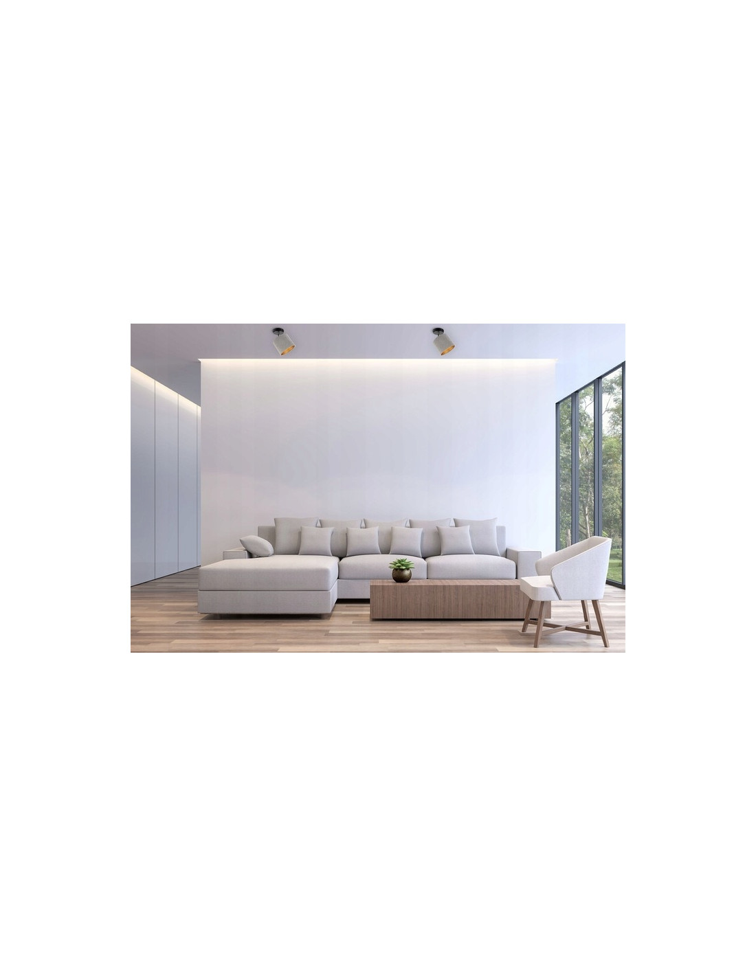 Model MEDIOLAN wyróżnia się stylowym abażurem w kolorze szarym, który doskonale wpasowuje się w aktualne trendy wnętrzarskie. Dodatkowym atutem jest dostępność dwóch wersji wykończenia metalowej konstrukcji: w biały i w czarny kolorze, co zwiększa możliwości dopasowania lampy do różnych stylów pomieszczeń. Złote wnętrze abażura dodaje lampie wyjątkowego charakteru, tworząc ciepłe i przytulne światło.
