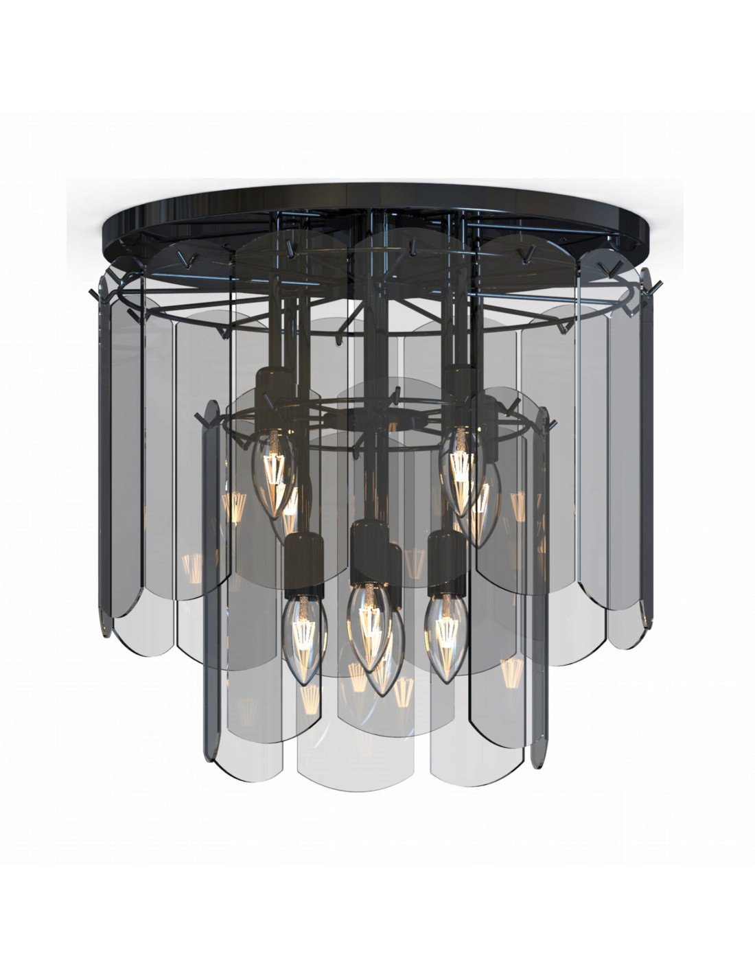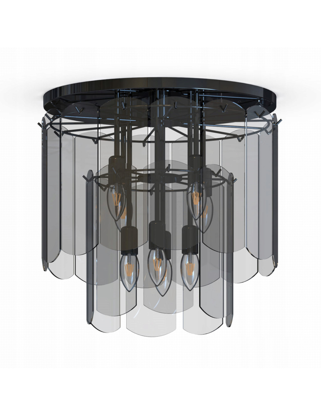 Klosze lampy wykonane z dymionego szkła subtelnie filtrują światło, tworząc przyjemną atmosferę w salonie, jadalni czy sypialni. Transparentne elementy lampy dodają jej wyrazistości, co sprawia, że doskonale wpisuje się ona w nowoczesne aranżacje. Dzięki temu, nie tylko spełnia funkcję praktyczną, ale także stanowi efektowną dekorację każdego wnętrza.