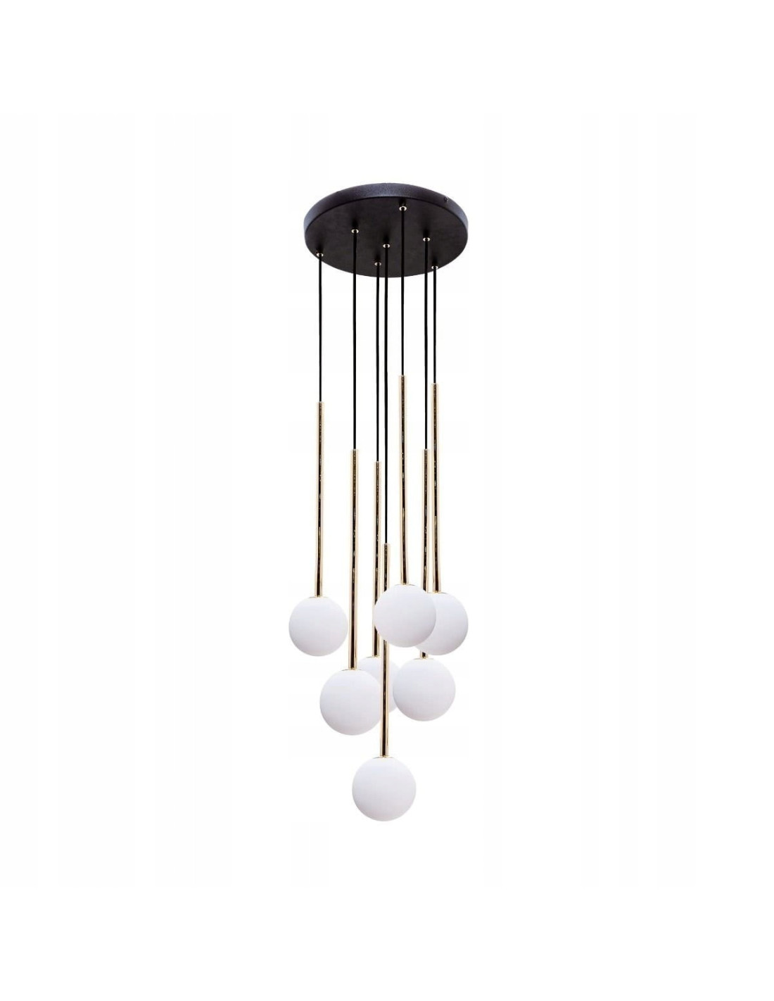 Wykonana z trwałych materiałów, takich jak metal i szkło, lampa zapewnia długotrwałe użytkowanie oraz estetyczny wygląd przez wiele lat. Jej wymiary - wysokość 180 cm, szerokość oraz głębokość 35 cm - sprawiają, że będzie efektownym dodatkiem, który z pewnością przyciągnie uwagę. Dodatkowo, metalowa konstrukcja w połączeniu z szklanymi kulami tworzy harmonijną całość, łącząc elegancję z nowoczesnością.