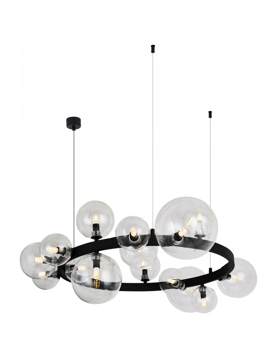 Lampa Bubbles Round to model wyposażony w 15 punktów świetlnych z gwintem G9, co gwarantuje doskonałe doświetlenie większych przestrzeni. Idealnie nadaje się do pomieszczeń, gdzie wymagane jest mocne oświetlenie. Po zakupie, prosimy o informację na temat preferowanego koloru kloszy, dostępnych w wersjach: transparentnej, dymiowanej i miodowej.