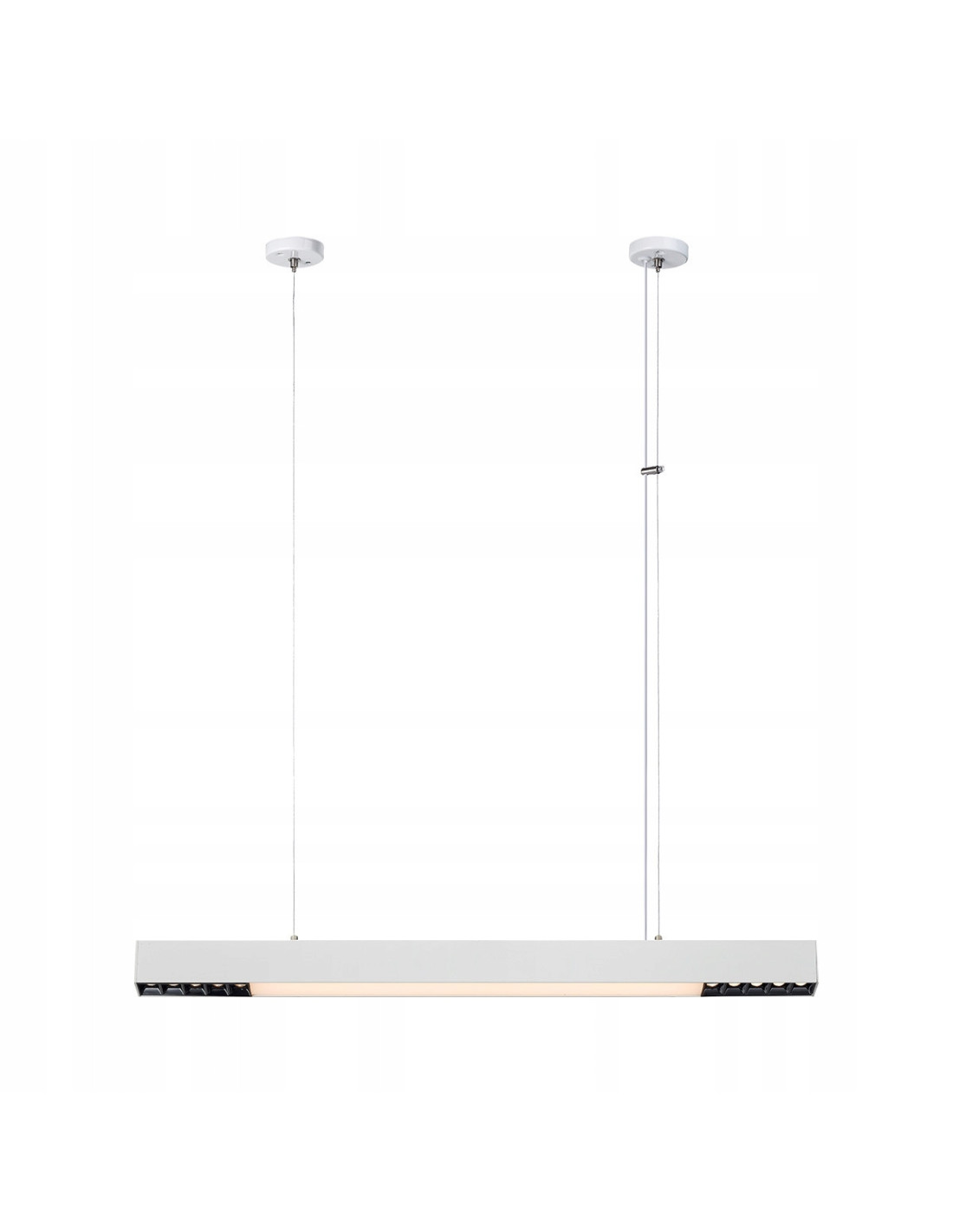 Odkryj nową jakość oświetlenia z podłużną lampą wiszącą Cali, która łączy w sobie nowoczesny design oraz zaawansowaną technologię. Ta wyjątkowa lampa, wykonana z wysokiej jakości białego aluminium, doskonale sprawdzi się jako centralny element w Twoim jadalni, kuchni czy biurze. Jej minimalistyczny kształt prostopadłościanu, z miniaturowymi reflektorkami i gładką akrylową blendą, nadaje wnętrzu elegancji i stylu.