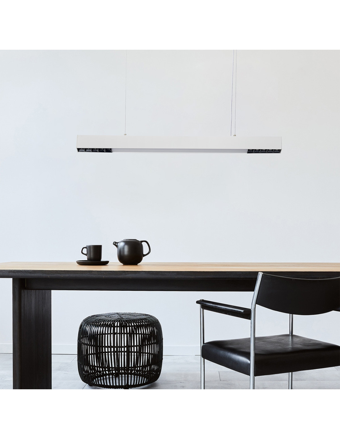 Lampa Cali M LED CCT oferuje regulację wysokości dzięki regulowanym linkom o maksymalnej długości 120 cm, co pozwala na idealne dopasowanie do przestrzeni. Oferowane przez nią zmienne barwy światła (3000K, 4000K, 6000K) umożliwiają dostosowanie oświetlenia do różnych aktywności i nastrojów, a także podkreślają unikalny charakter pomieszczenia.