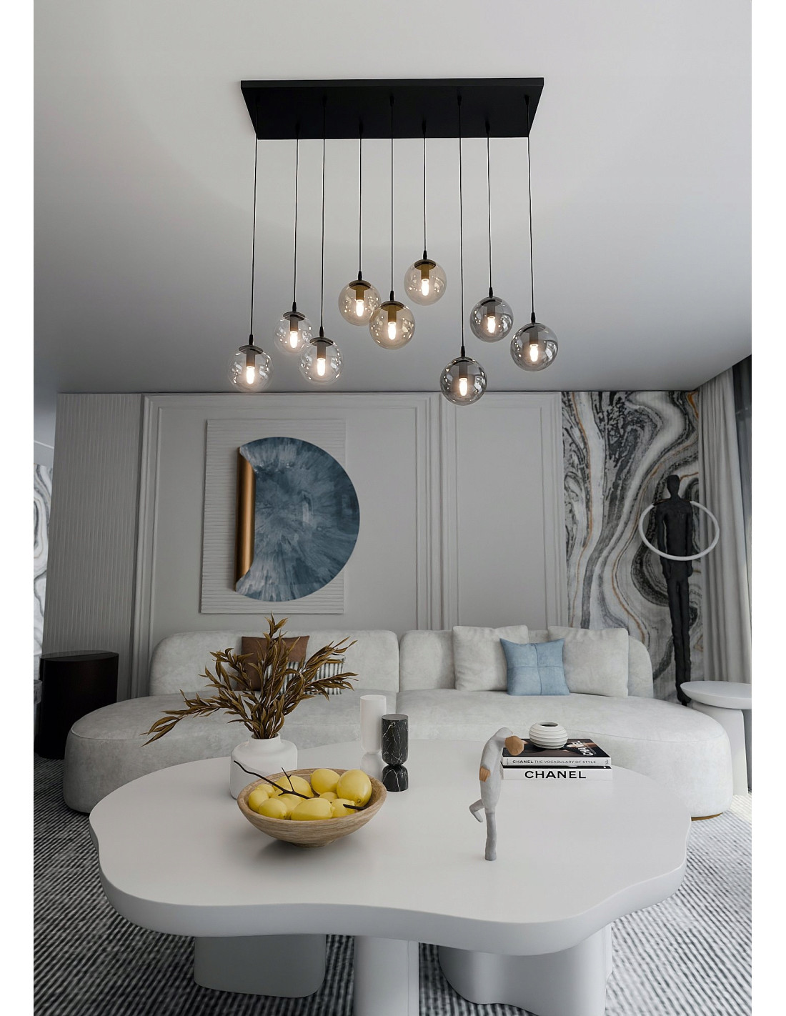 Lampa ZWIS jest wykonana z wysokiej jakości materiałów, takich jak metal i szkło, co gwarantuje trwałość oraz estetyczny wygląd. Klosze w klasycznym czarnym oraz bezbarwnym kolorze stwarzają możliwość swobodnej aranżacji, pozwalając na dopasowanie do różnorodnych stylów wnętrzarskich. Jej uniwersalny charakter sprawia, że stanowi doskonały wybór zarówno do jadalni, jak i salonu, kuchni czy biura.