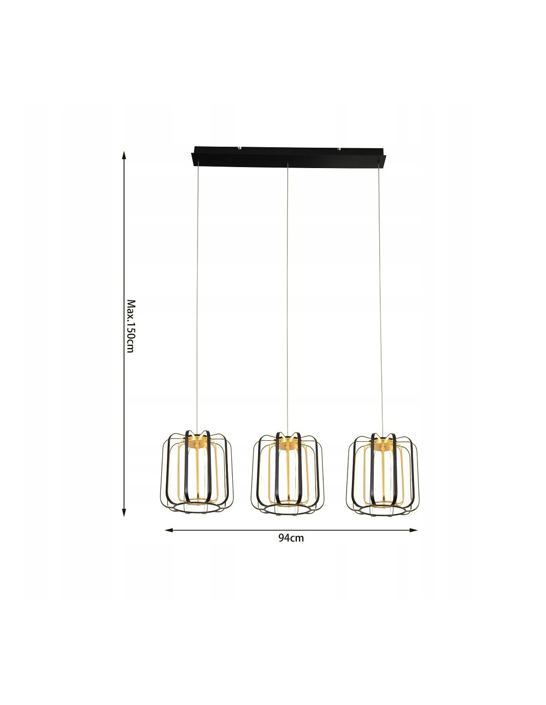 Wymiary lampy XARA to wysokość 150 cm i szerokość 94 cm, co czyni ją idealnym punktem centralnym w pomieszczeniu. Pasuje do różnych typów pomieszczeń, w tym: