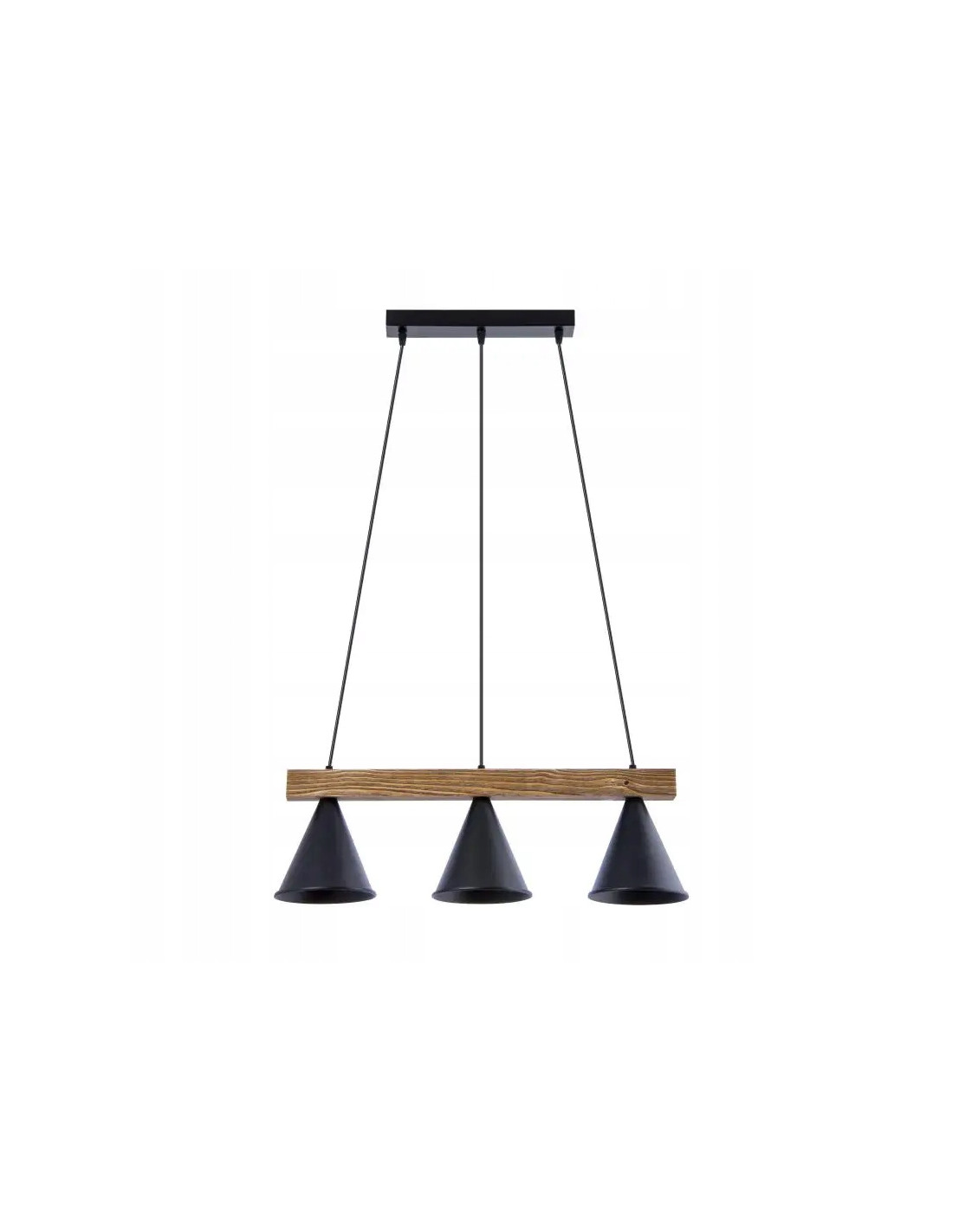 Wzornictwo lampy świetnie odzwierciedla najnowsze trendy w aranżacji wnętrz, łącząc nowoczesne materiały z klasyczną elegancją. Czarne klosze lampy w połączeniu z drewnianą belką stanowią doskonały kontrast, który wprowadza do pomieszczenia niepowtarzalny klimat. Idealnie nadaje się do stylizacji zarówno w biurze, jak i w salonie czy sypialni.