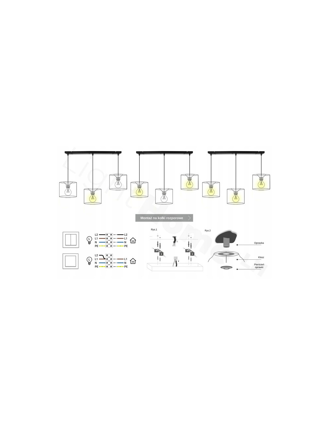 - Źródło światła: E27 x 3 (źródło światła w komplecie: nie)