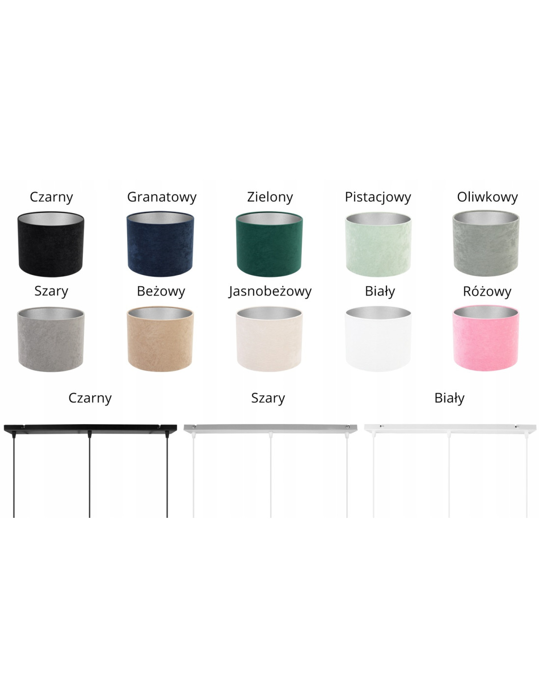 Klient ma możliwość wyboru koloru abażura spośród następujących opcji:
