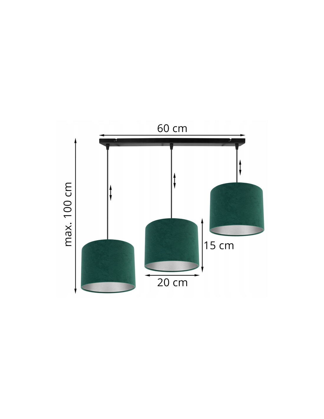 Lampa wisząca Mediolan z trzema abażurami wykonanymi z weluru w kolorze zielonym to wyjątkowa propozycja dla osób, które pragną nadać swojemu wnętrzu nowoczesny i elegancki charakter. Idealnie sprawdzi się zarówno w nowoczesnych, jak i klasycznych aranżacjach, w tym w stylach loftowym, minimalistycznym oraz skandynawskim.
