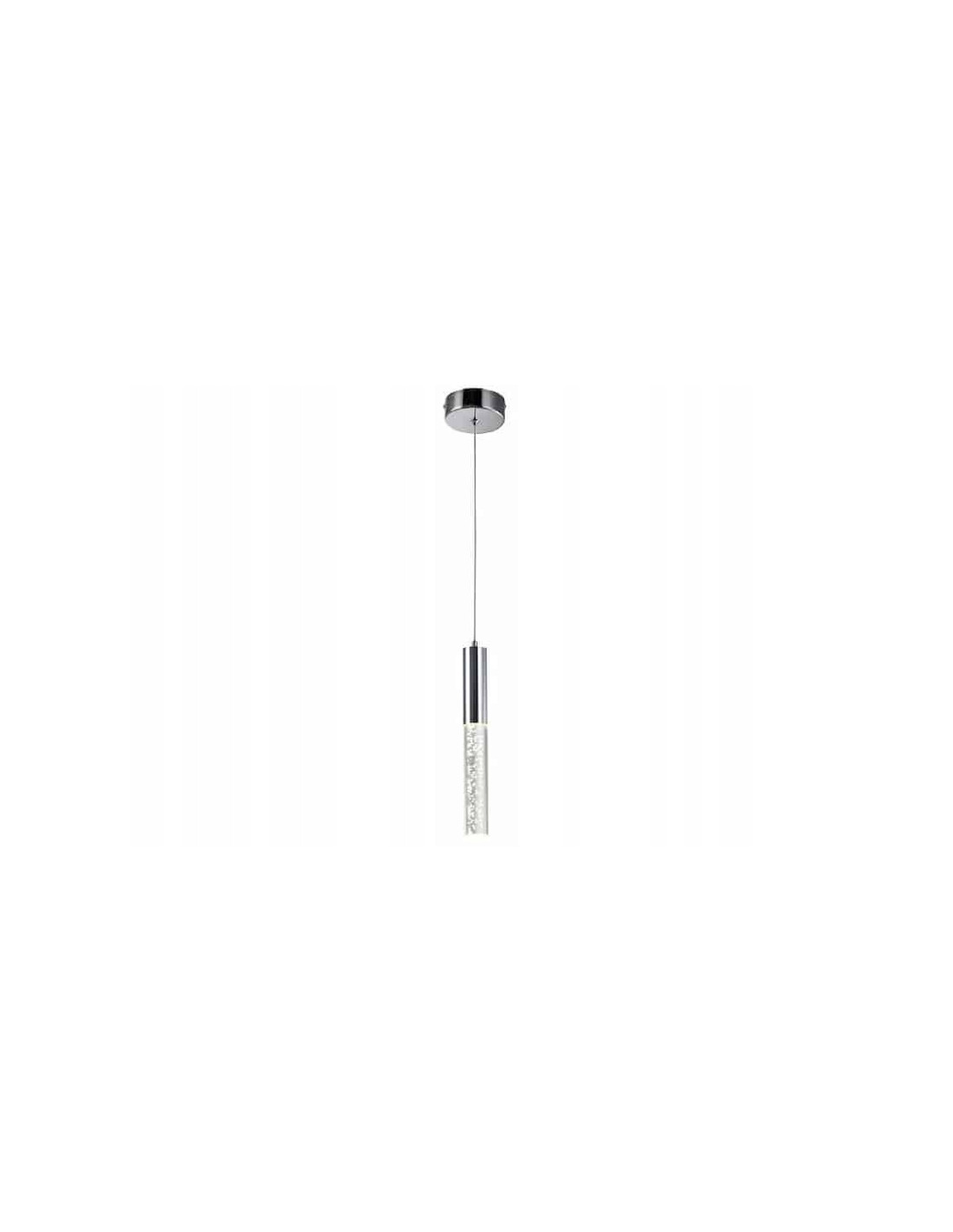 - Korpus lampy: Główna część lampy to podłużny, cylindryczny element. Górna część korpusu jest metalowa, w kolorze chromu, dopasowana do listwy sufitowej.