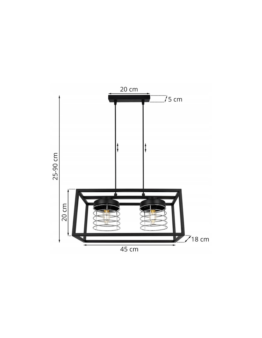 Lampa została zaprojektowana w taki sposób, aby zaspokoić potrzeby nawet najbardziej wymagających użytkowników. Średnica klosza wynosząca 12.5 cm oraz szerokość całkowita 45 cm sprawiają, że lampa doskonale wkomponuje się w różne aranżacje wnętrz. Dwa punkty świetlne z gniazdem E27 pozwalają na zastosowanie żarówek o maksymalnej mocy 60W, co zapewnia odpowiednią intensywność oświetlenia w każdym pomieszczeniu.