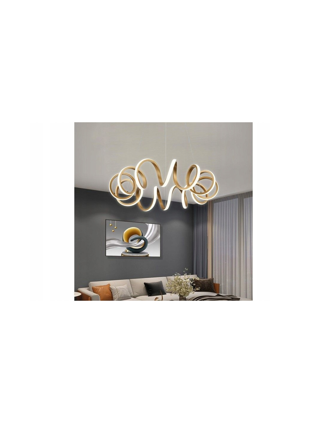 Złota nowoczesna lampa Loop to wyjątkowy element wyposażenia, który idealnie wkomponuje się w każde nowoczesne wnętrze. Jej abstrakcyjna forma oraz dynamiczna kompozycja światła sprawiają, że stanie się nie tylko źródłem oświetlenia, ale także prawdziwą ozdobą każdego pomieszczenia. Stworzona z myślą o osobach poszukujących nietuzinkowych rozwiązań, lampa doskonale sprawdzi się w salonie, sypialni, kuchni, czy biurze.