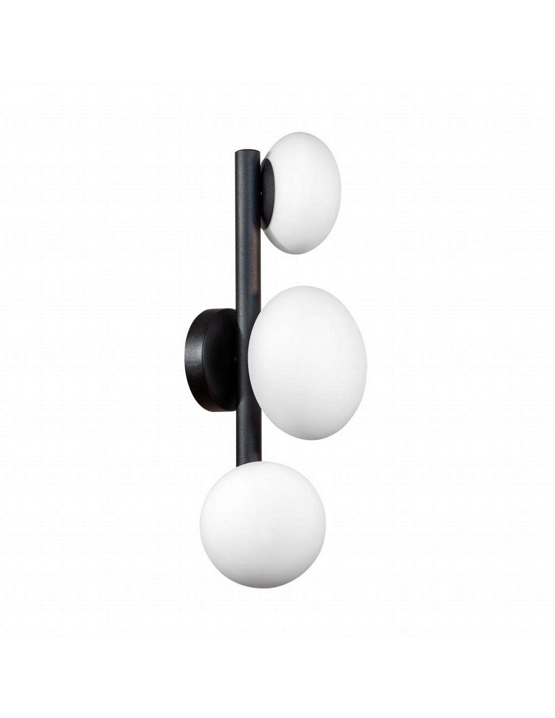 W skład konstrukcji kinkietu wchodzi czarny metalowy przyściennik, który stanowi trwałą podstawę, oraz szklany klosz w kolorze białym, który subtelnie rozprasza światło, tworząc przyjemną atmosferę. Kinkiet OMI został zaprojektowany z myślą o najnowszych trendach aranżacyjnych, co czyni go idealnym wyborem do miejsc wymagających eleganckiego oświetlenia.
