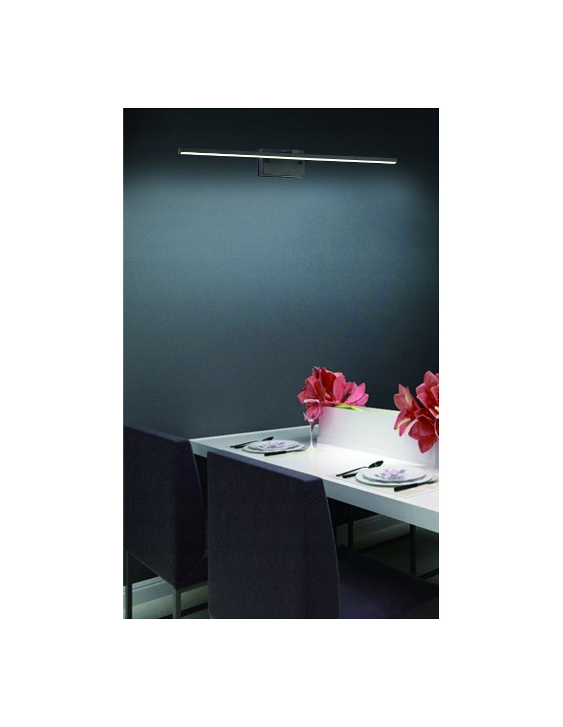 Wymiary kinkietu to wysokość 5.5 cm, szerokość 60 cm oraz głębokość 10 cm, co sprawia, że idealnie nadaje się do montażu w różnych aranżacjach wnętrz. Dzięki swojej elastycznej formie kinkiet może stać się zarówno centralnym punktem pomieszczenia, jak i subtelnym uzupełnieniem istniejącego wystroju.