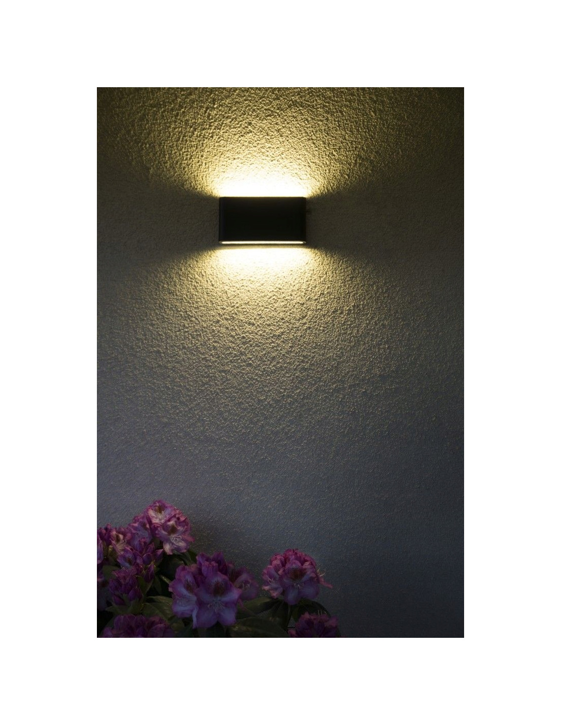 Kinkiet SLIM wyróżnia się wbudowanym podwójnym układem LED, który emituje światło w dwóch kierunkach – zarówno do góry, jak i w dół. Taka konstrukcja stwarza niepowtarzalny klimat dzięki jasności wynoszącej 1250 lumenów, co zapewnia odpowiednie oświetlenie otoczenia. Idealnie sprawdzi się w przestrzeni ogrodowej oraz na tarasach, dodając im wyjątkowego charakteru.
