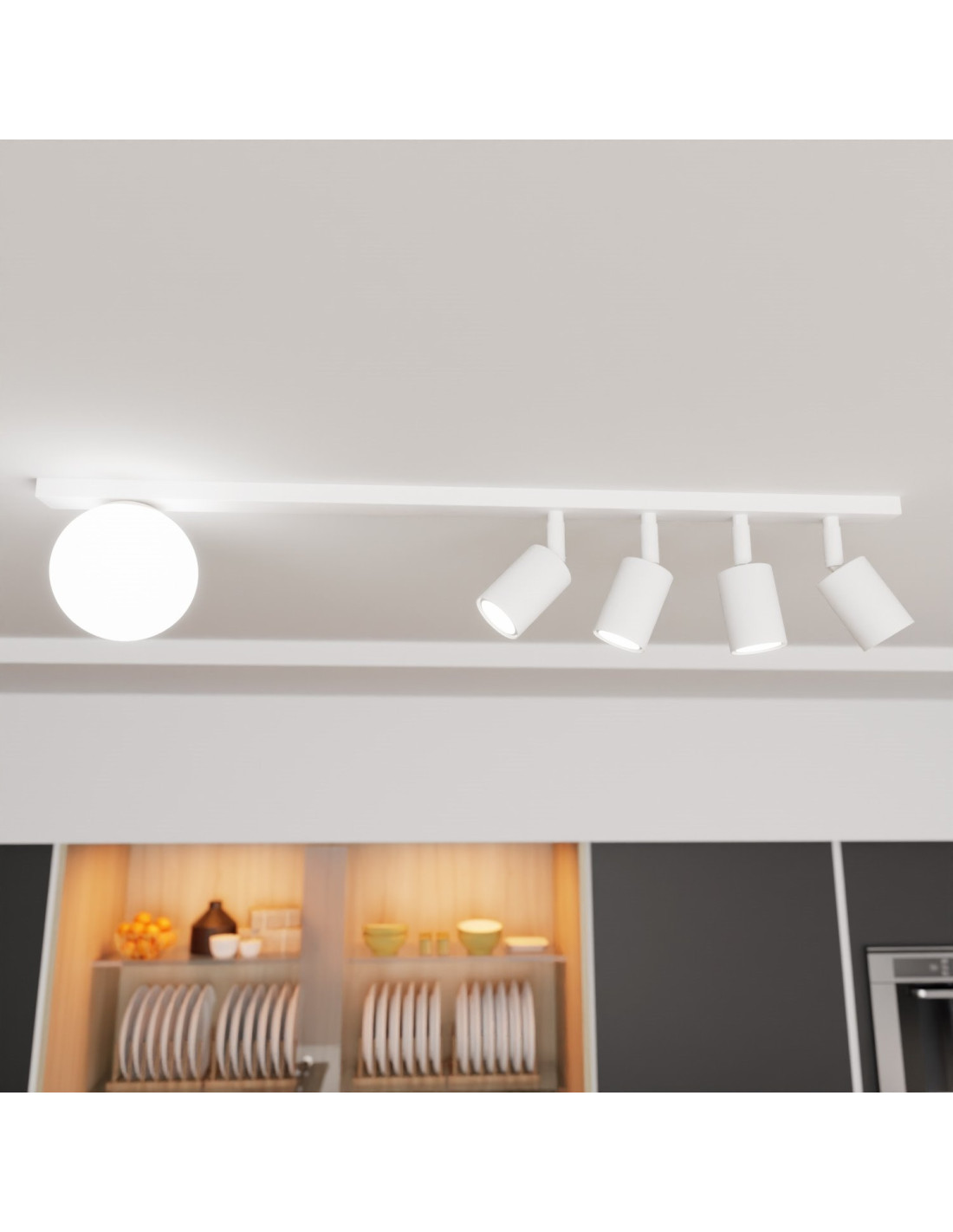 Plafon BASTER został zaprojektowany z myślą o traktowaniu przestrzeni jako całości. Doskonale sprawdzi się w jadalniach, kuchniach, salonach oraz biurach, gdzie stworzy przyjemną atmosferę oraz odpowiednie warunki do pracy i relaksu. Dzięki zastosowaniu czterech punktów świetlnych z gwintem GU10, lampa zapewnia intensywne i komfortowe oświetlenie w każdym zakątku pomieszczenia.