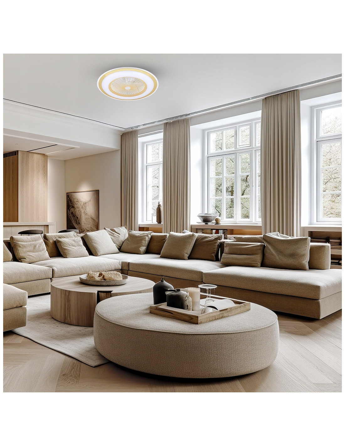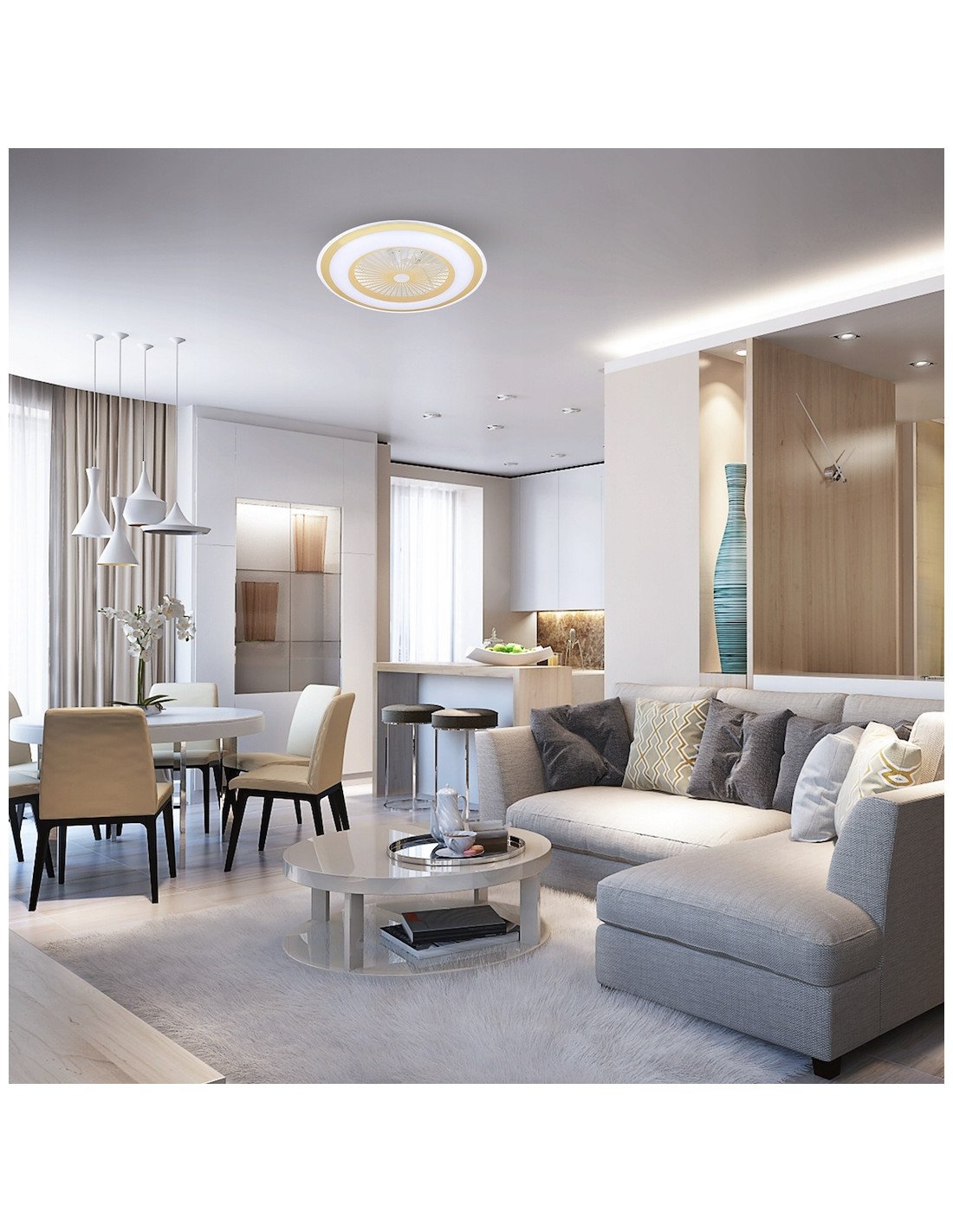 Odkryj nowoczesny wentylator sufitowy ZEPHYR, który dostępny jest w eleganckim złotym kolorze. To doskonałe rozwiązanie dla osób szukających stylowego i funkcjonalnego oświetlenia do salonu, sypialni czy biura. ZEPHYR harmonijnie łączy w sobie unikalny design z praktycznością, oferując nie tylko oświetlenie, ale również efektywne chłodzenie pomieszczeń.
