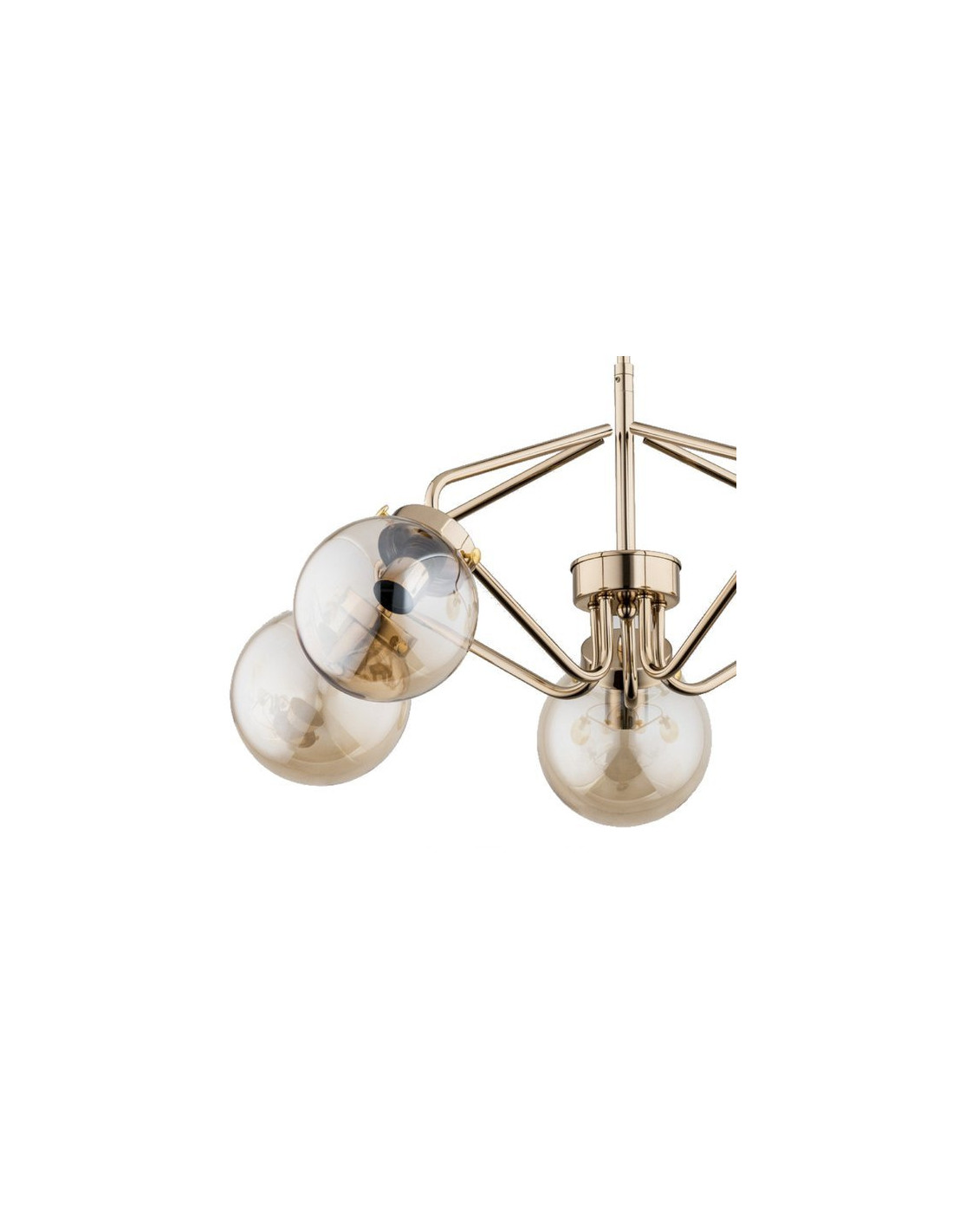 Wysoka na 48,5 cm i szeroka na 58 cm, lampa doskonale sprawdzi się w każdym pomieszczeniu. Dzięki eleganckiemu złotemu kolorowi oraz transparentnym kloszom, tworzy subtelne, aczkolwiek efektowne oświetlenie. Lampa jest kompatybilna z żarówkami typu E14 o maksymalnej mocy 40W, co daje możliwość wyboru odpowiedniego źródła światła zgodnie z indywidualnymi potrzebami.