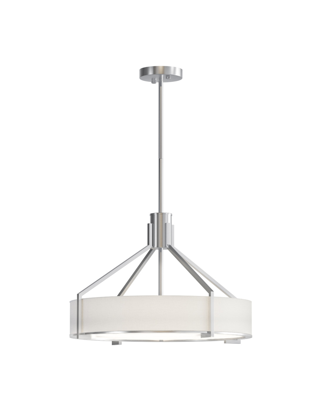 - Materiał i kolor: Metal - satynowy nikiel, tkanina - biały kremowy, szkło - biały matowy