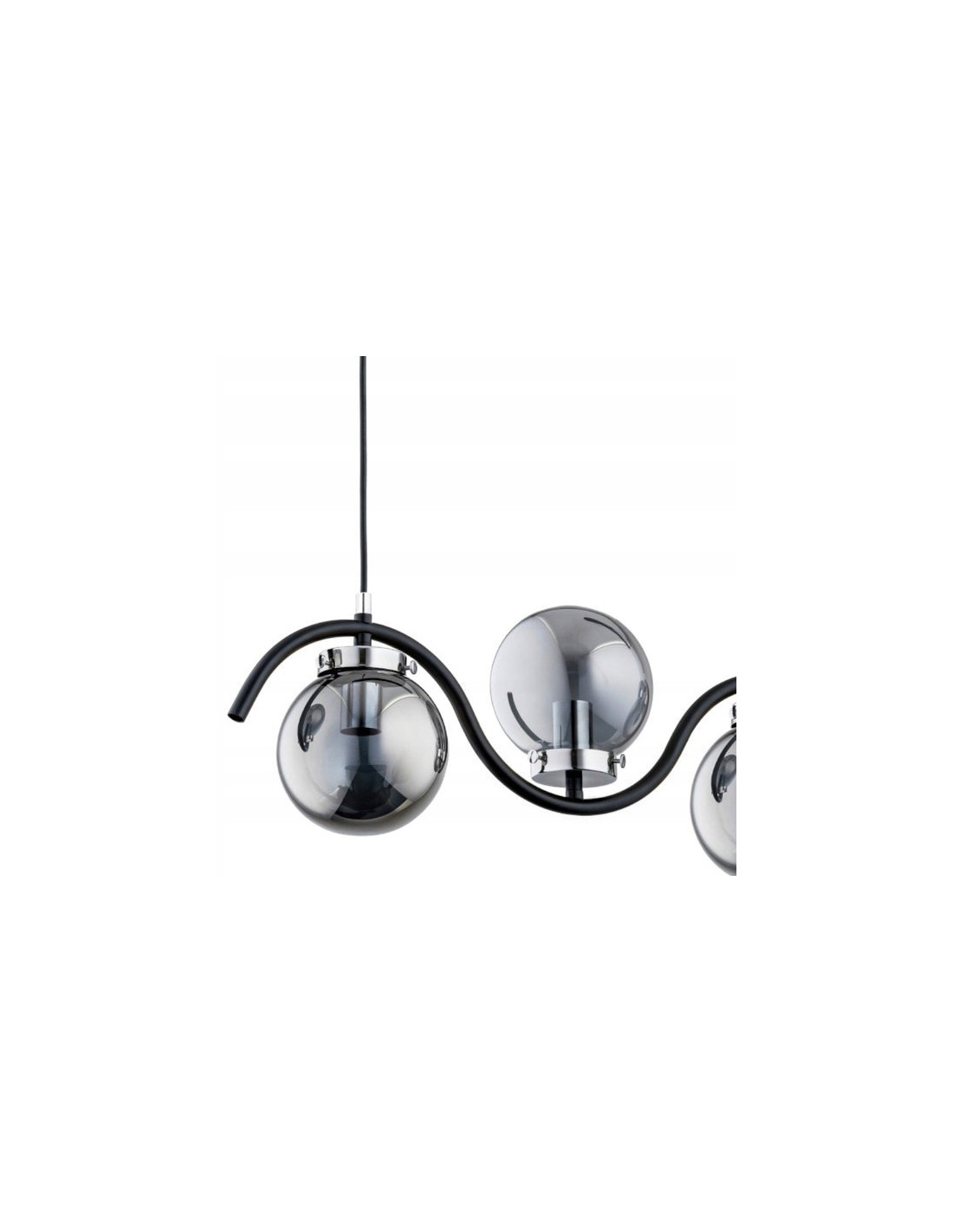 Stelaż lampy wykonany z lakierowanej stali w kolorze czarnym wyróżnia się minimalistycznym stylem, który w połączeniu z kloszami wiszącymi tworzy niezwykle atrakcyjną kompozycję. Dodatkowo, delikatne krople rtęci dodają całemu projektowi unikalnego charakteru, czyniąc go idealnym dodatkiem do nowoczesnych oraz industrialnych aranżacji.