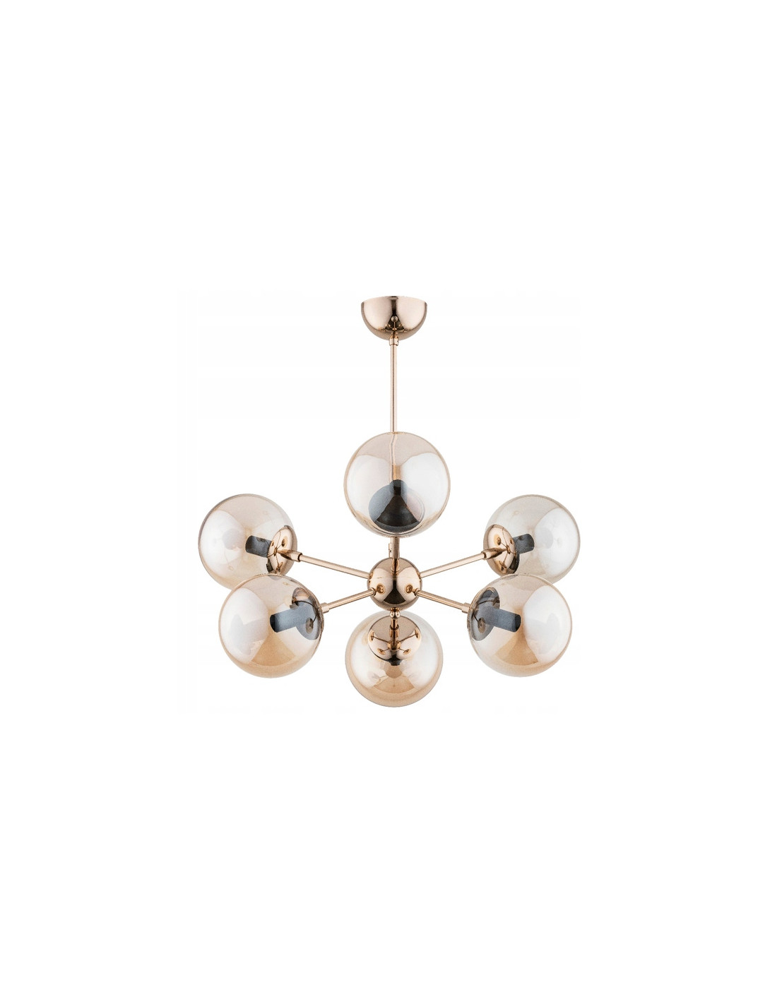 Stylowe wykończenie żyrandola sprawia, że wyróżnia się on na tle innych modeli dostępnych na rynku. Klosze bursztynowe dodają mu ciepła i przytulności, co sprawia, że staje się on miejscem, wokół którego gromadzi się rodzina i przyjaciele. Jego uniwersalny design sprawia, że łatwo dopasujesz go do aktualnego wystroju wnętrza.